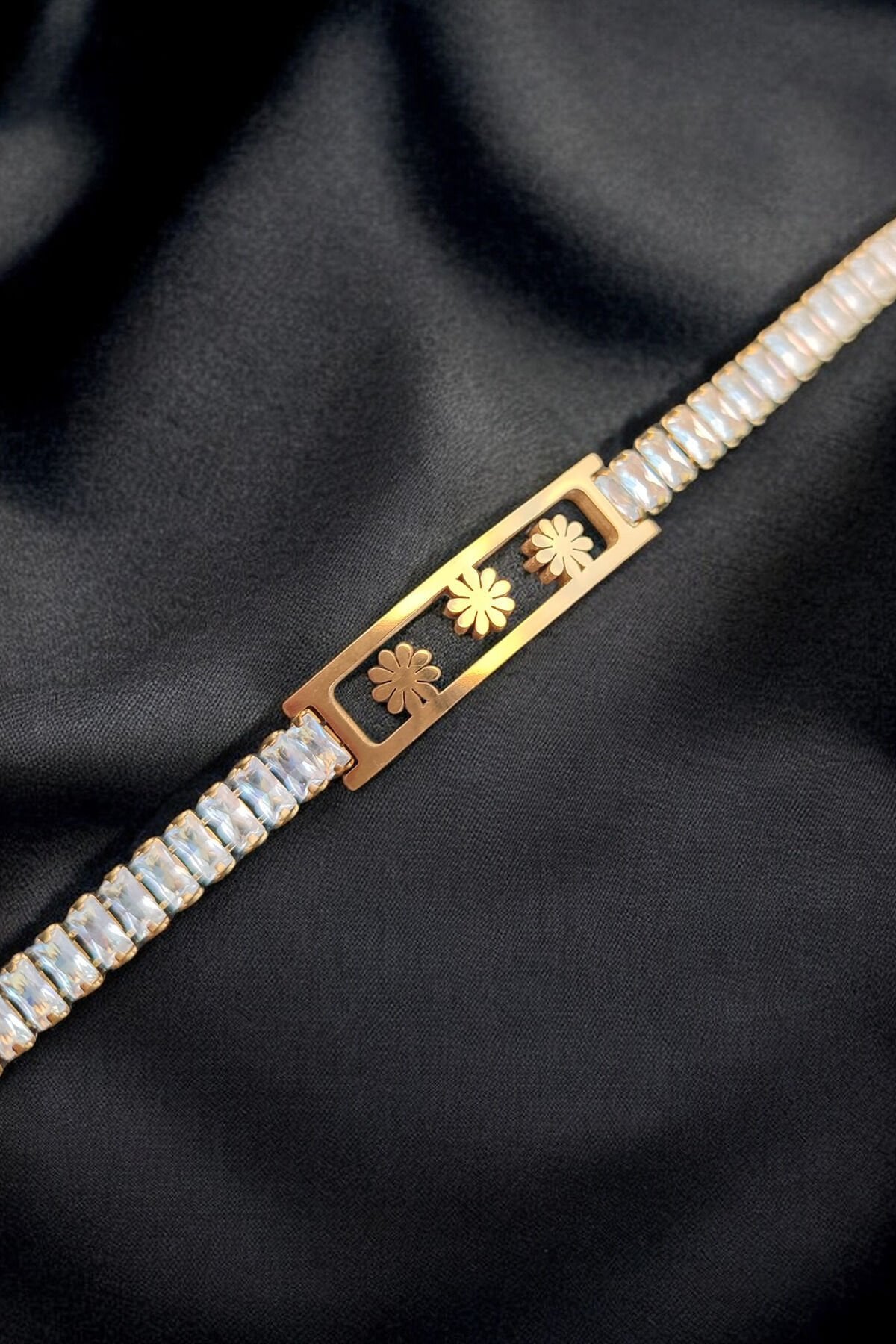 Altın Rengi Çiçek Kadın Bileklik (AYARLANABİLİR)