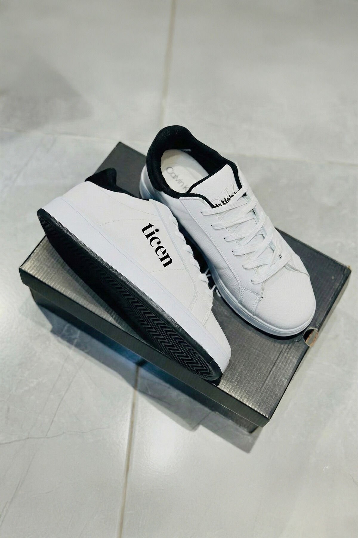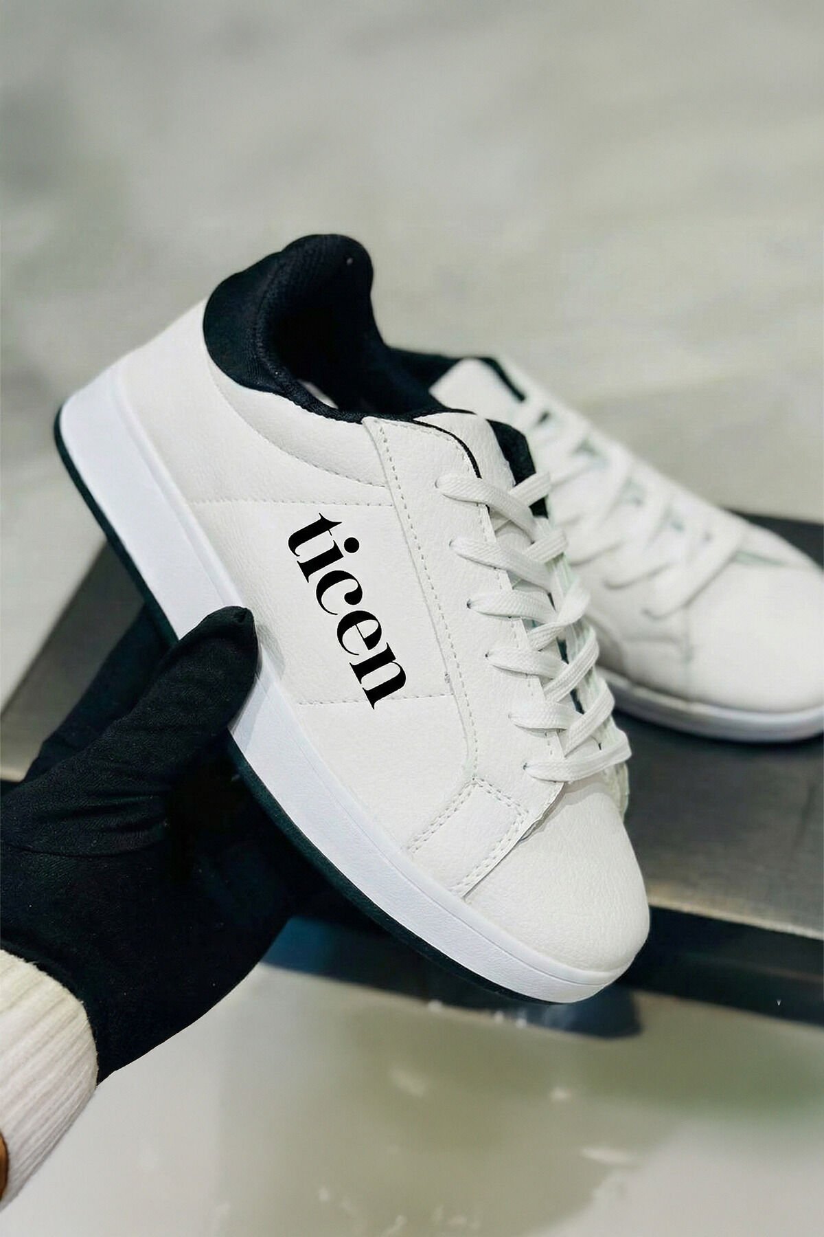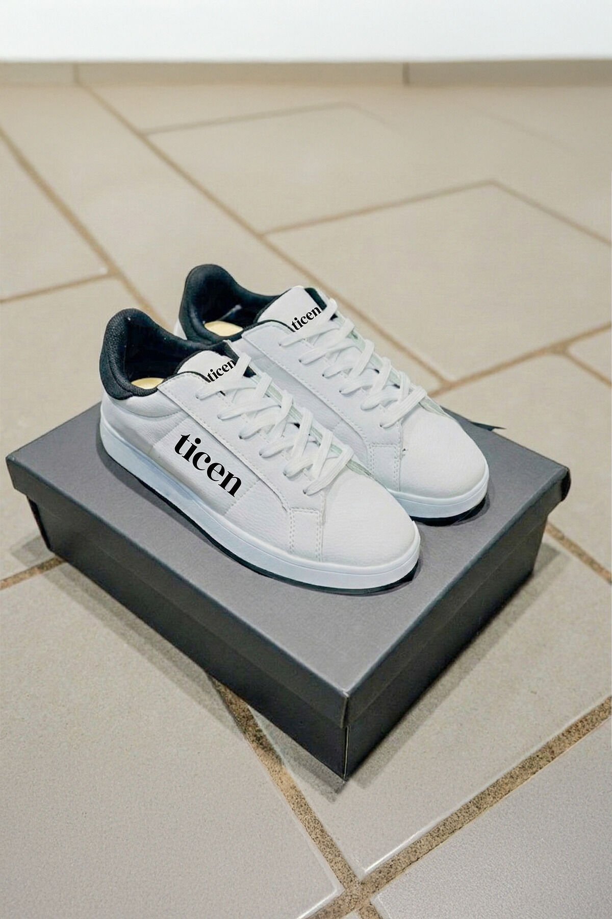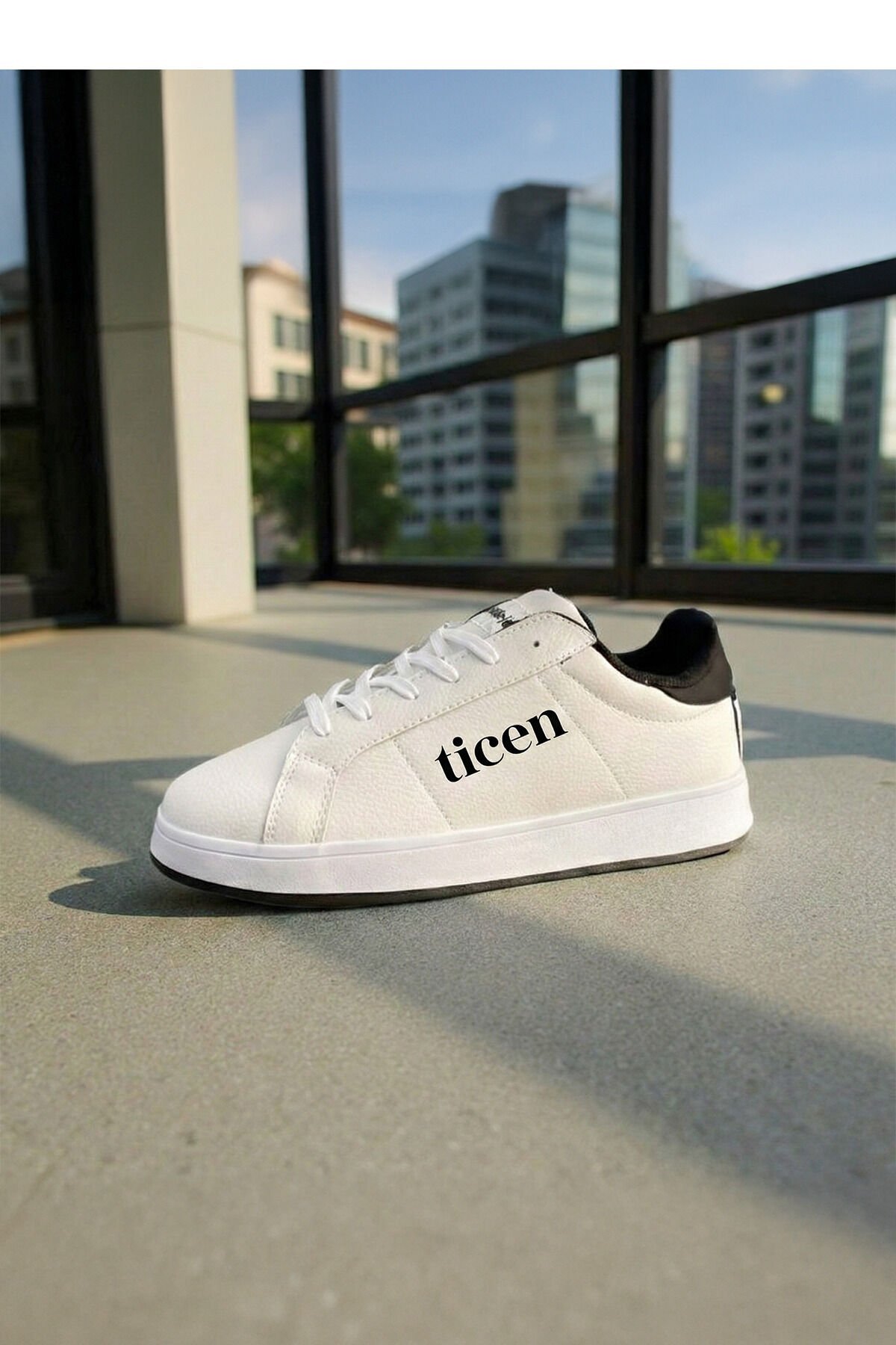 Beyaz Erkek/Kadın Sneaker Ayakkabı – Siyah Topuk Detaylı, Günlük & Şehir Stili