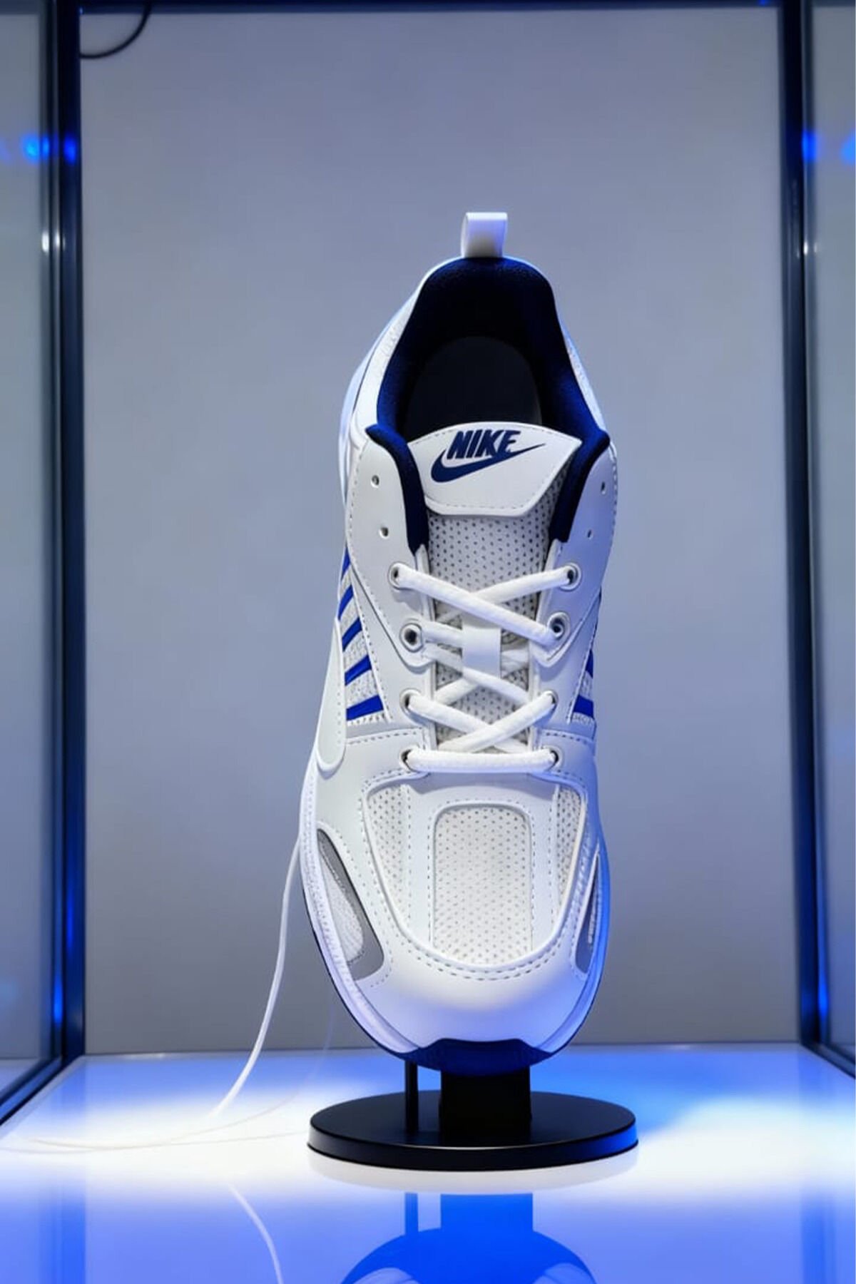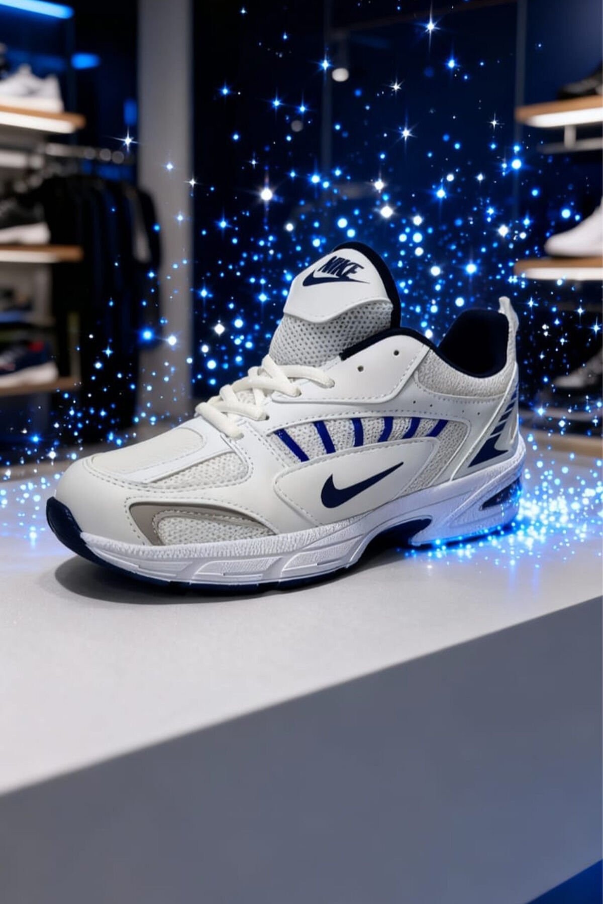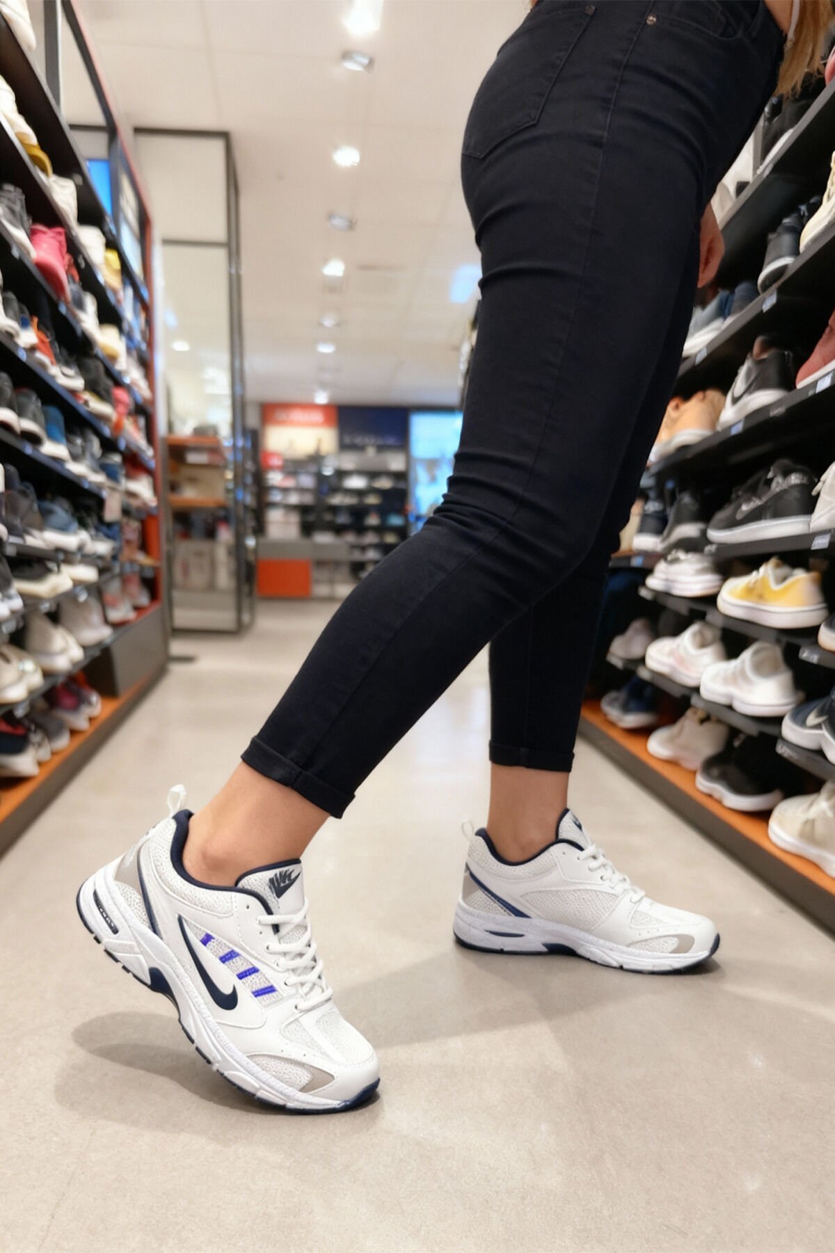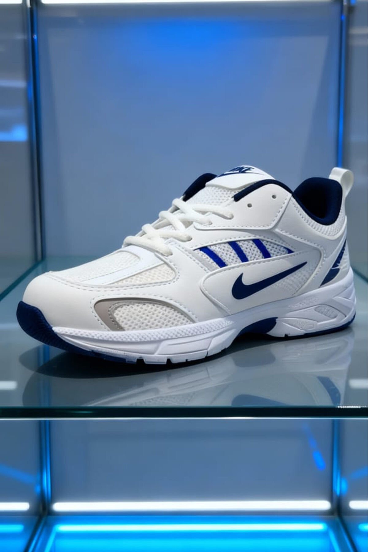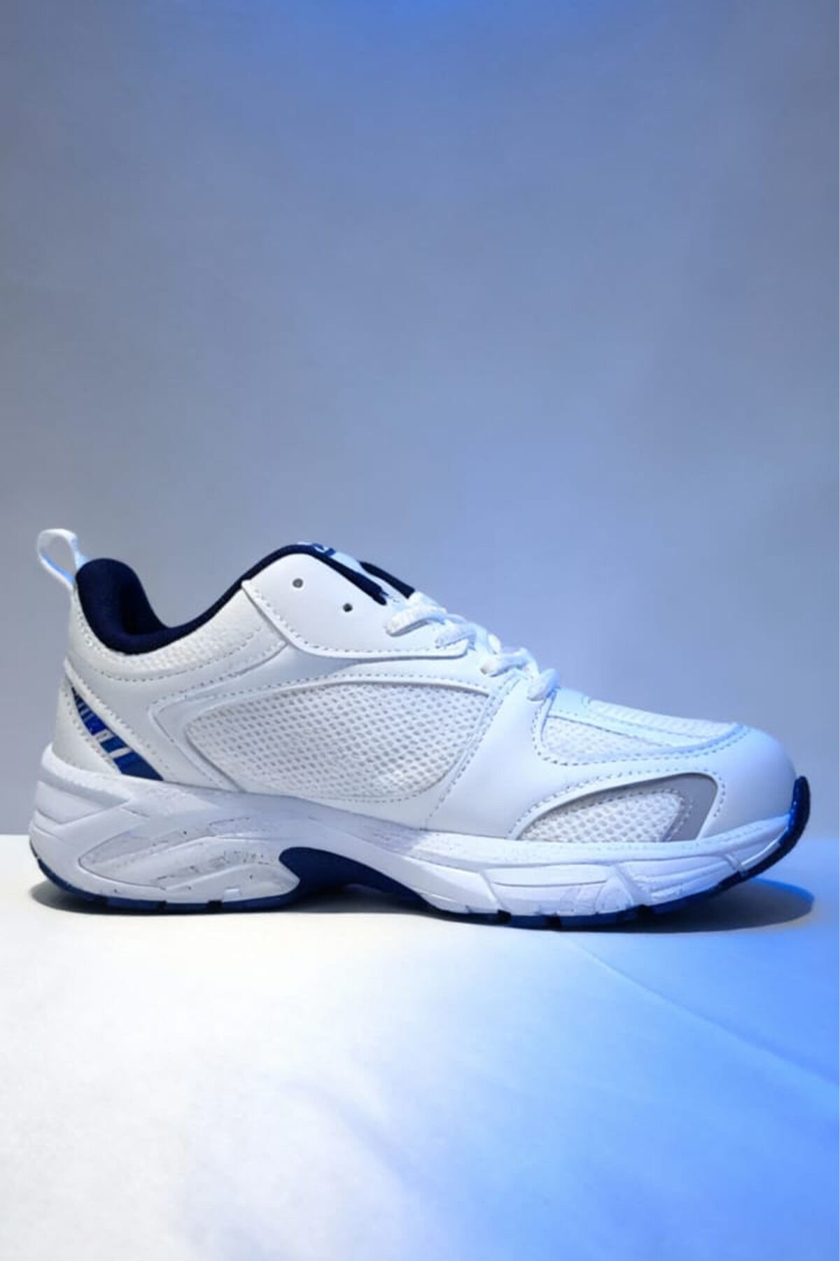 Beyaz Lacivert Kadın Spor Ayakkabı | Kalın Taban Rahat Yürüyüş ve Koşu Sneaker
