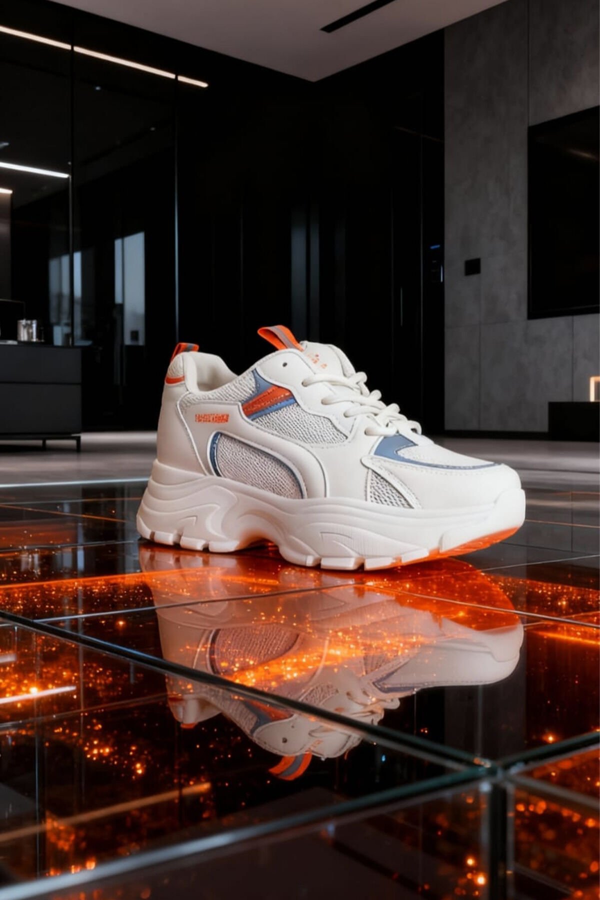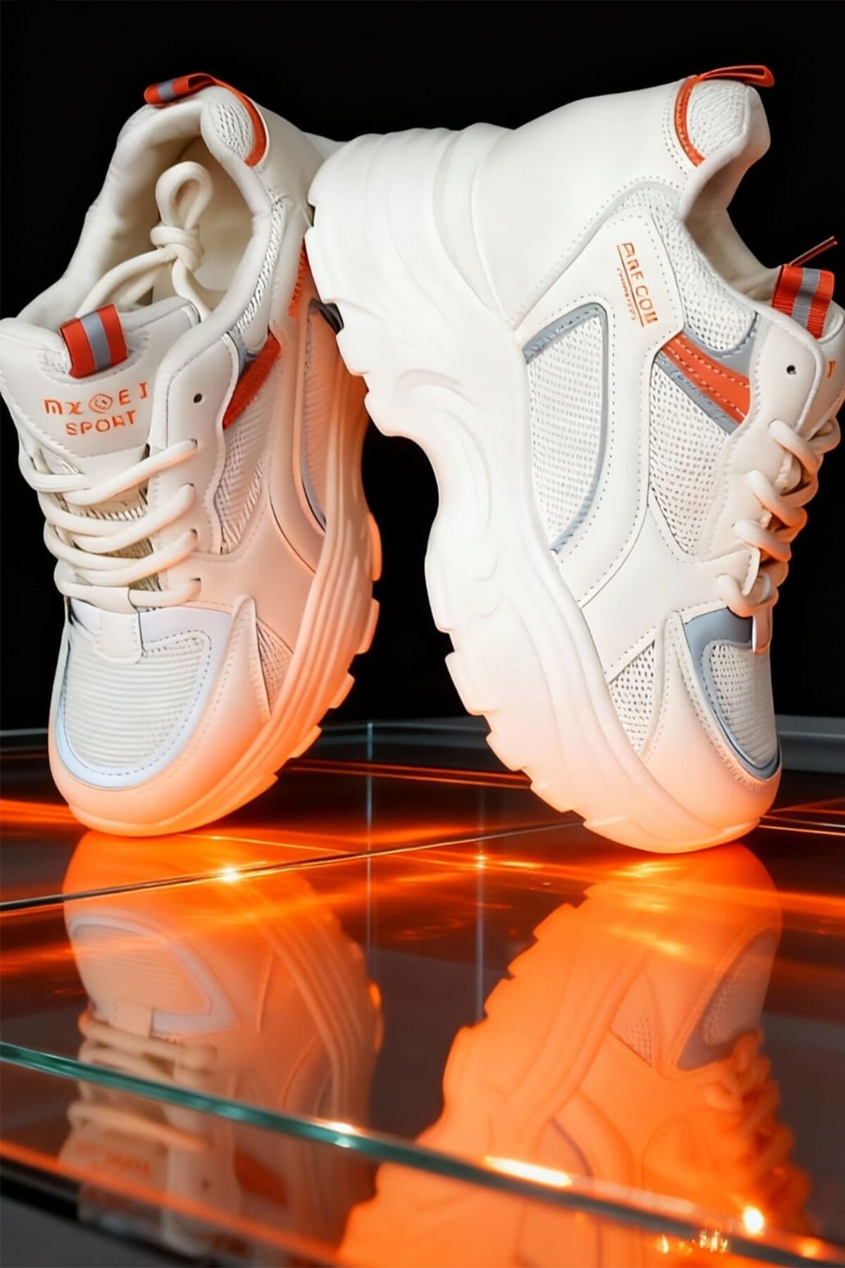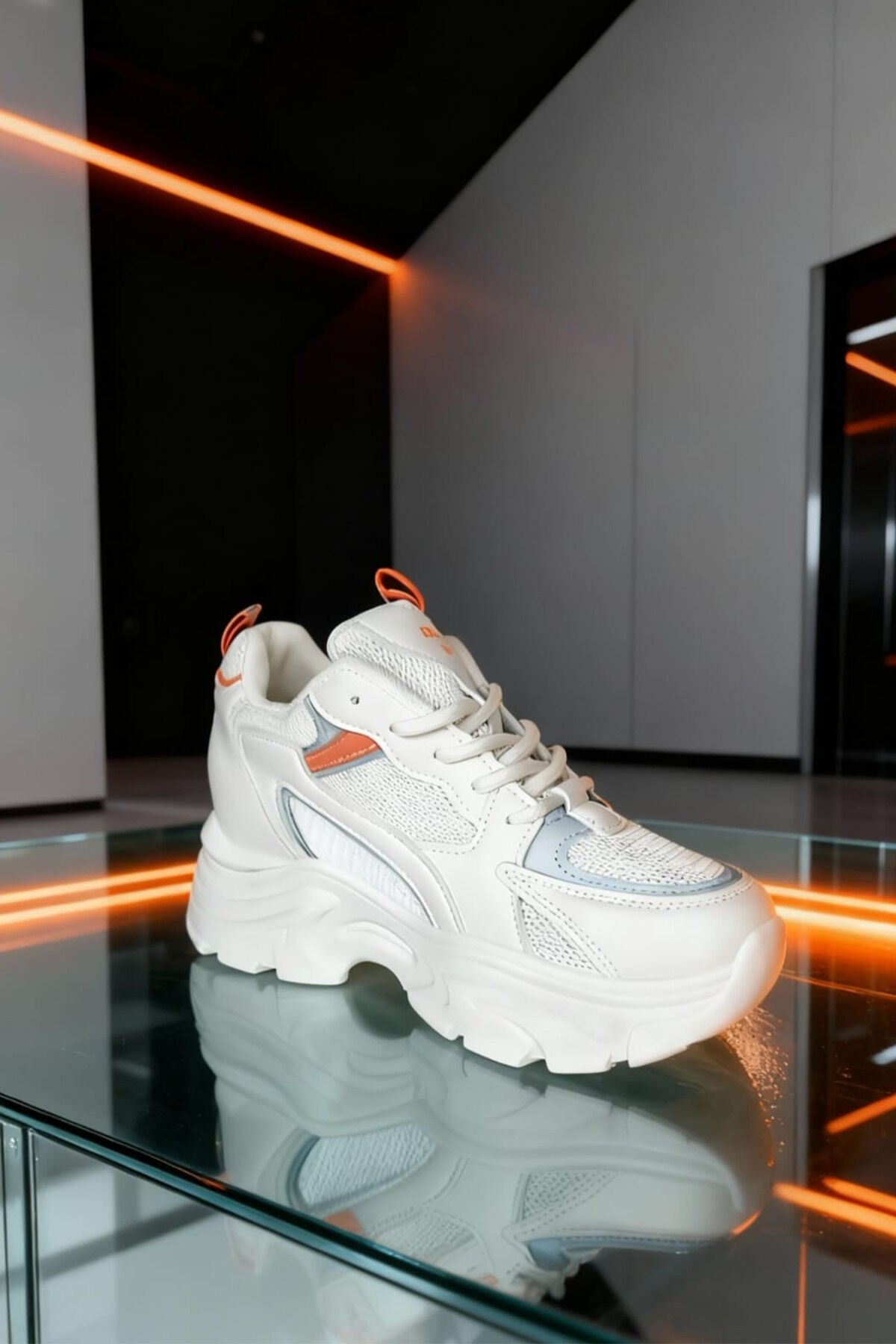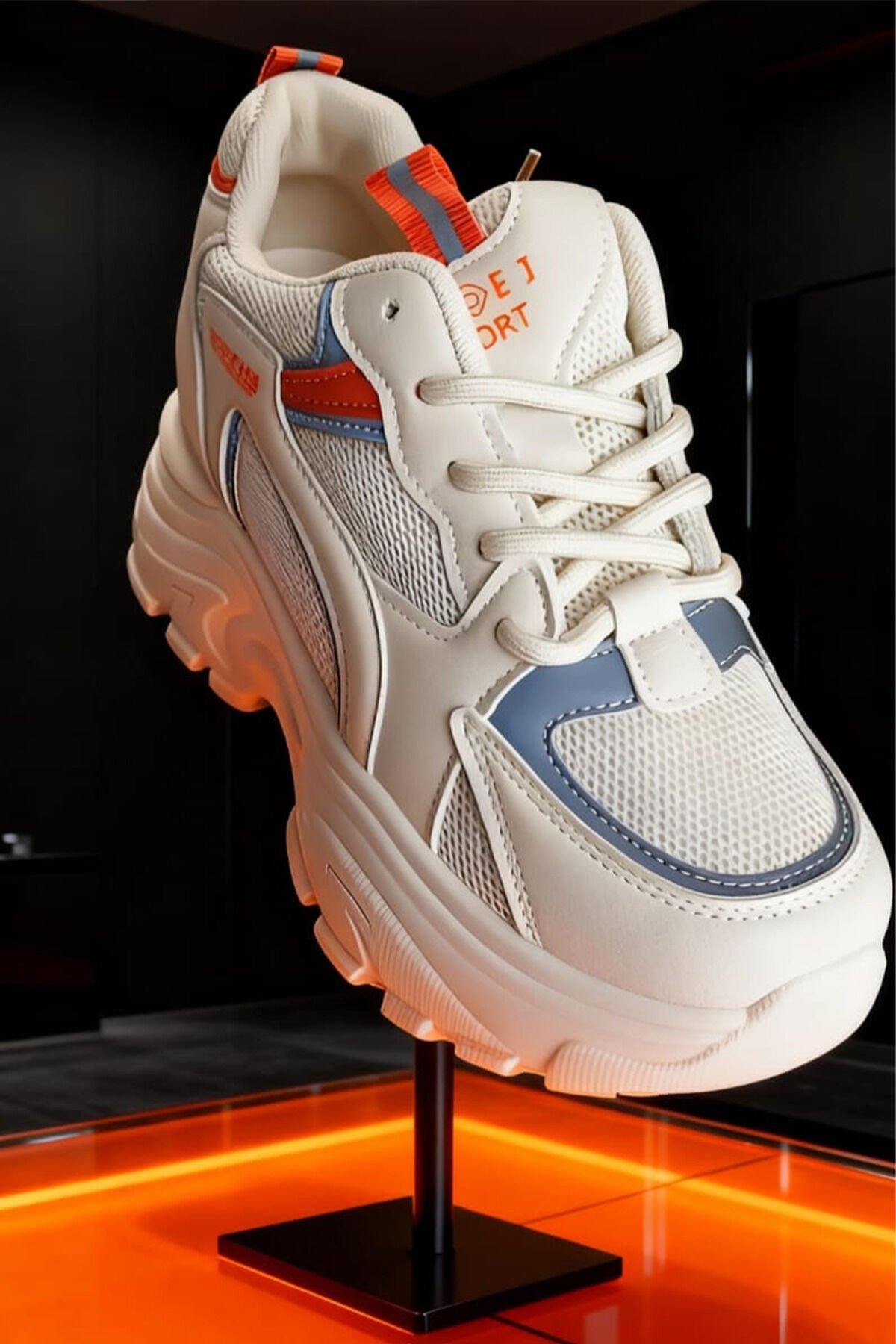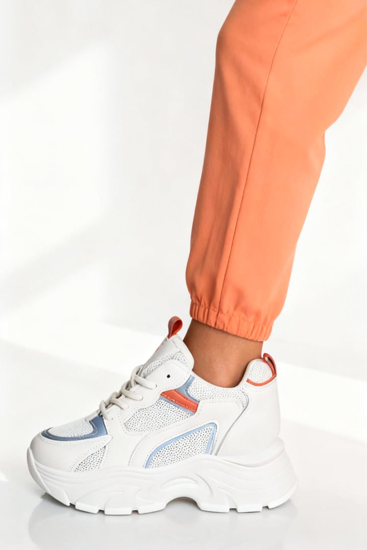 Beyaz Renk Turuncu ve Mavi Detaylı Kadın Spor Ayakkabı – Rahat ve Şık Günlük Kullanım