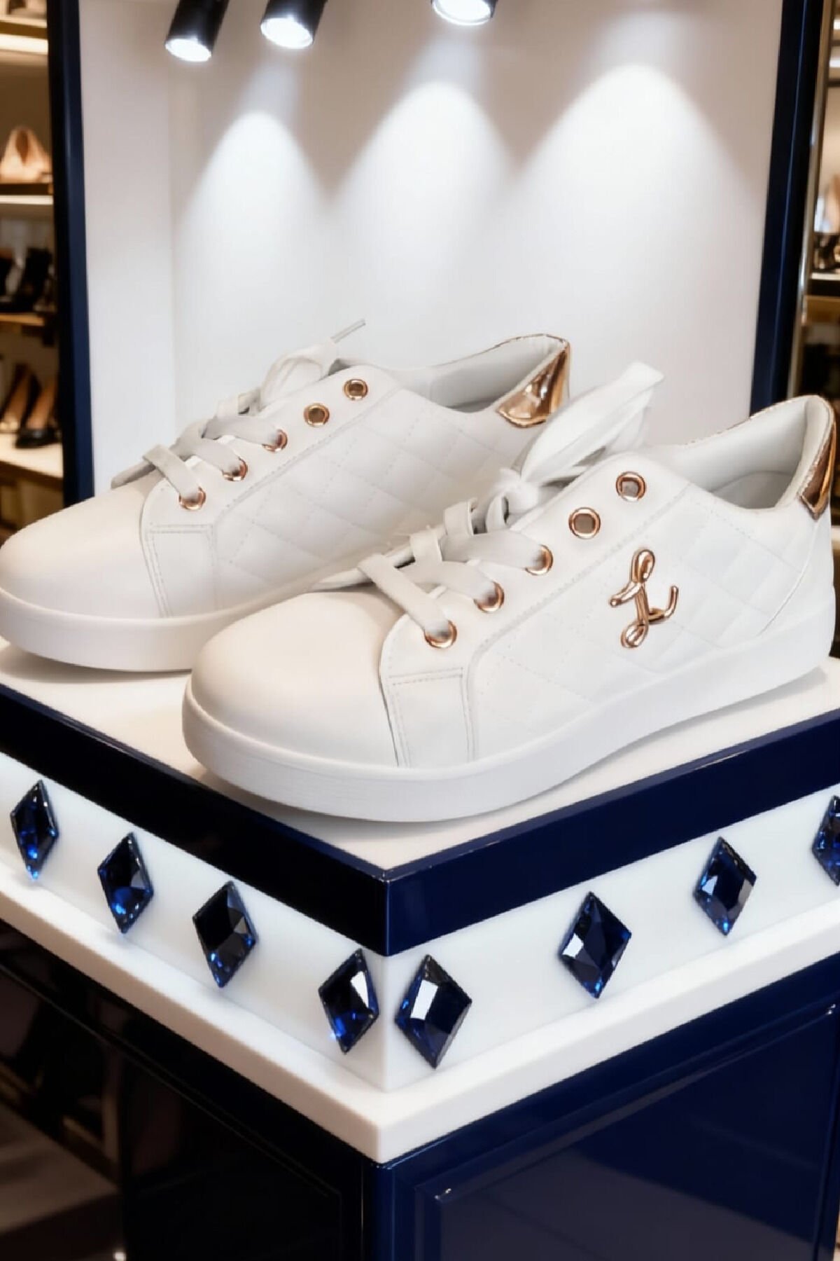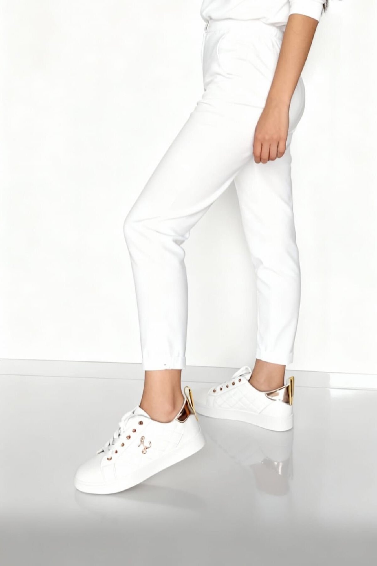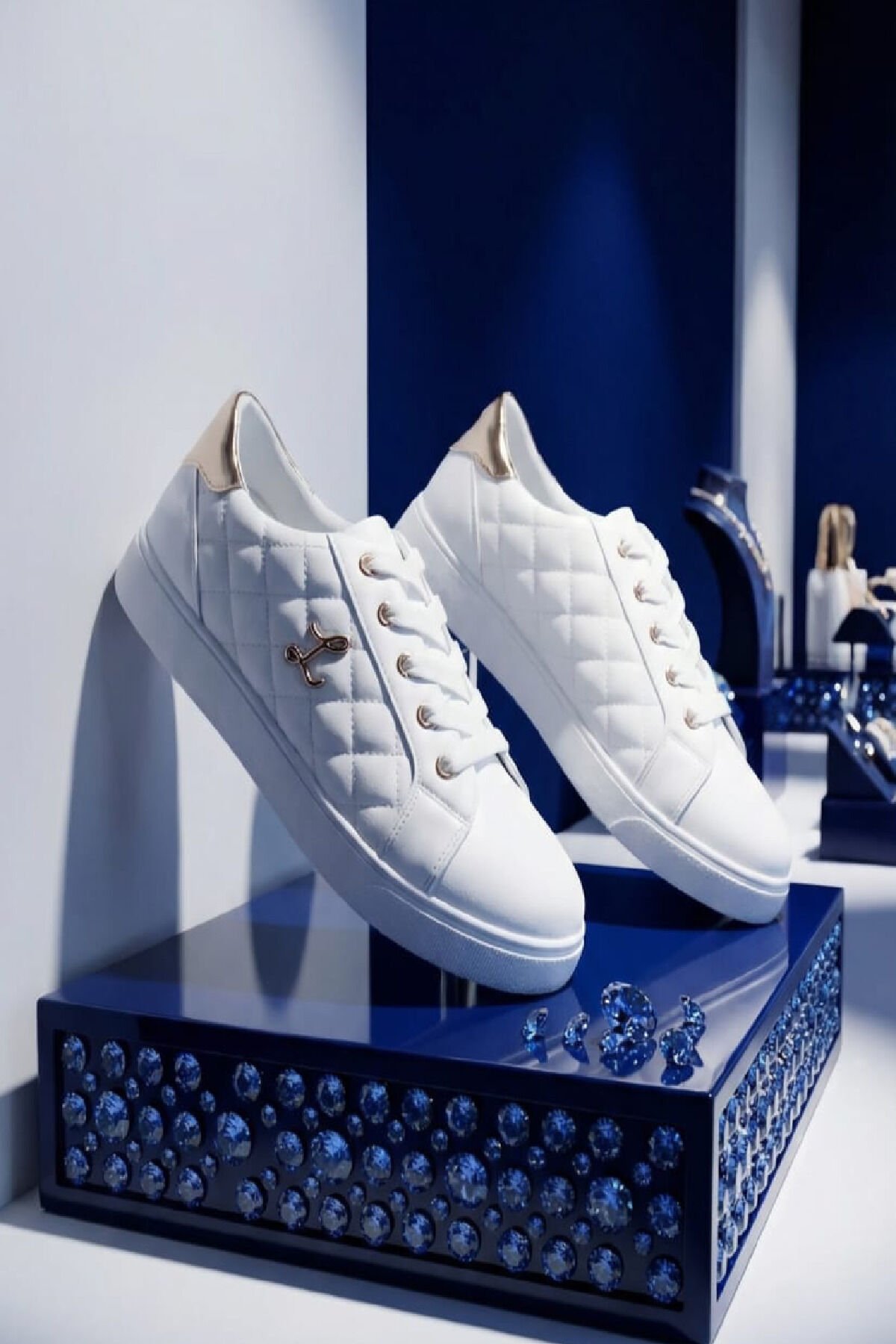 Beyaz Şık Kadın Sneaker | Altın Detaylı Rahat Günlük Ayakkabı