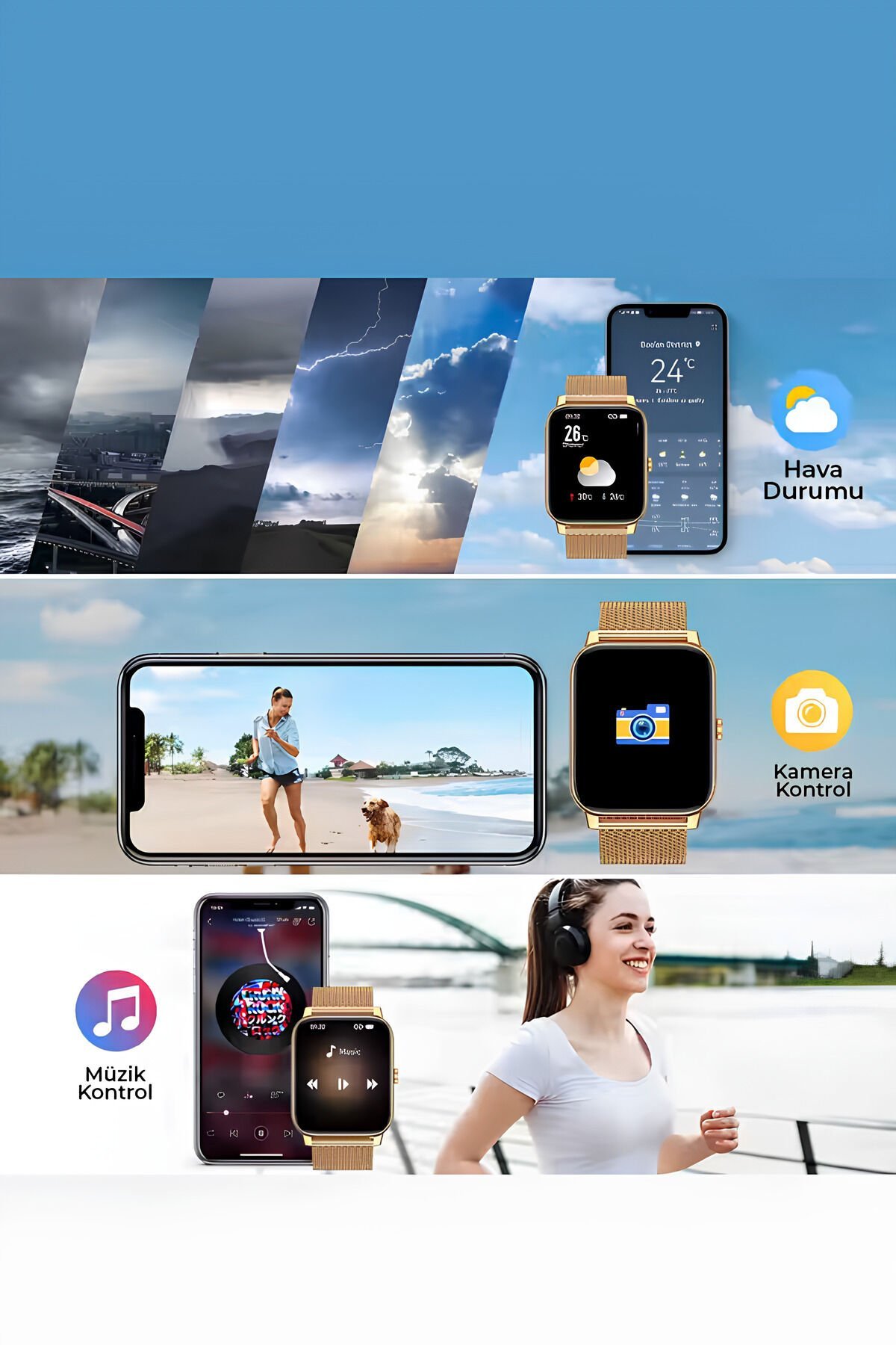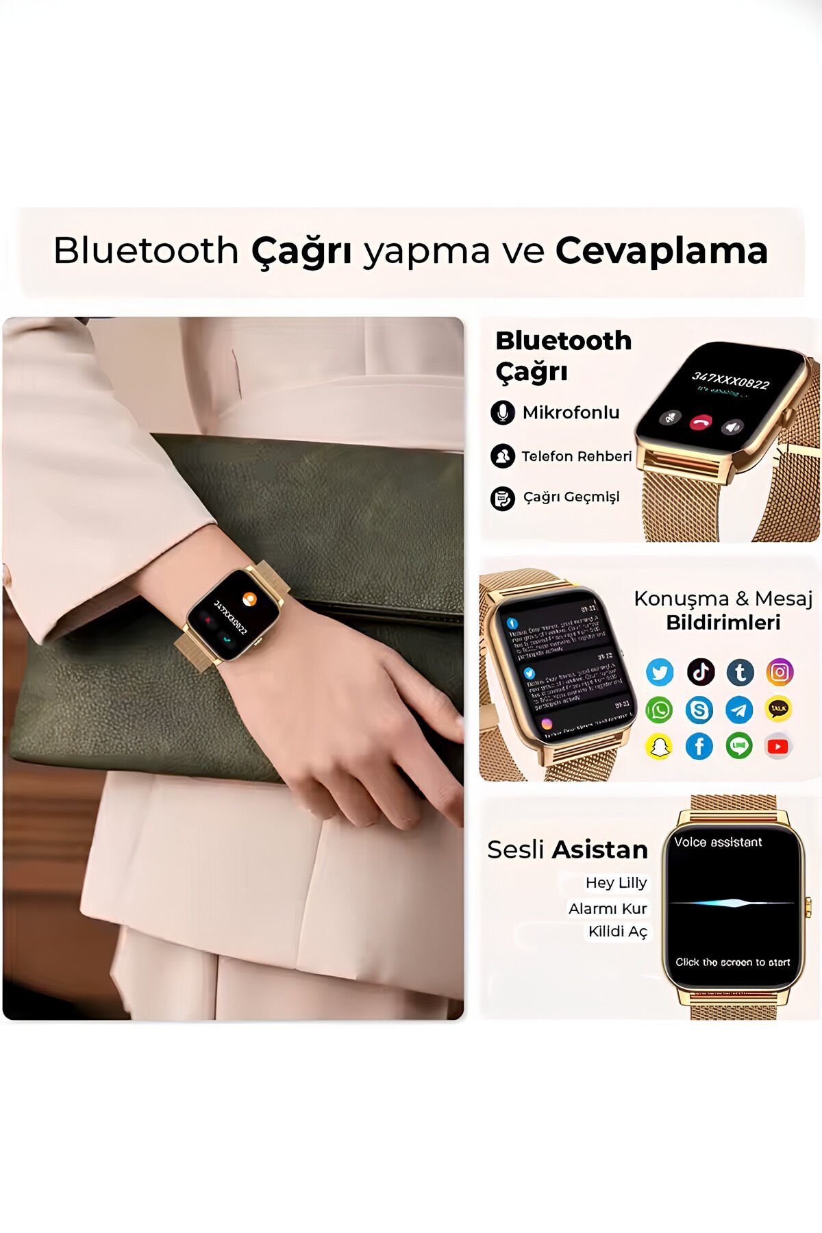 Bluetooth Görüşmeli Akıllı Saat Mikrofonlu, Mesaj Bildirimli, Sesli Asistanlı