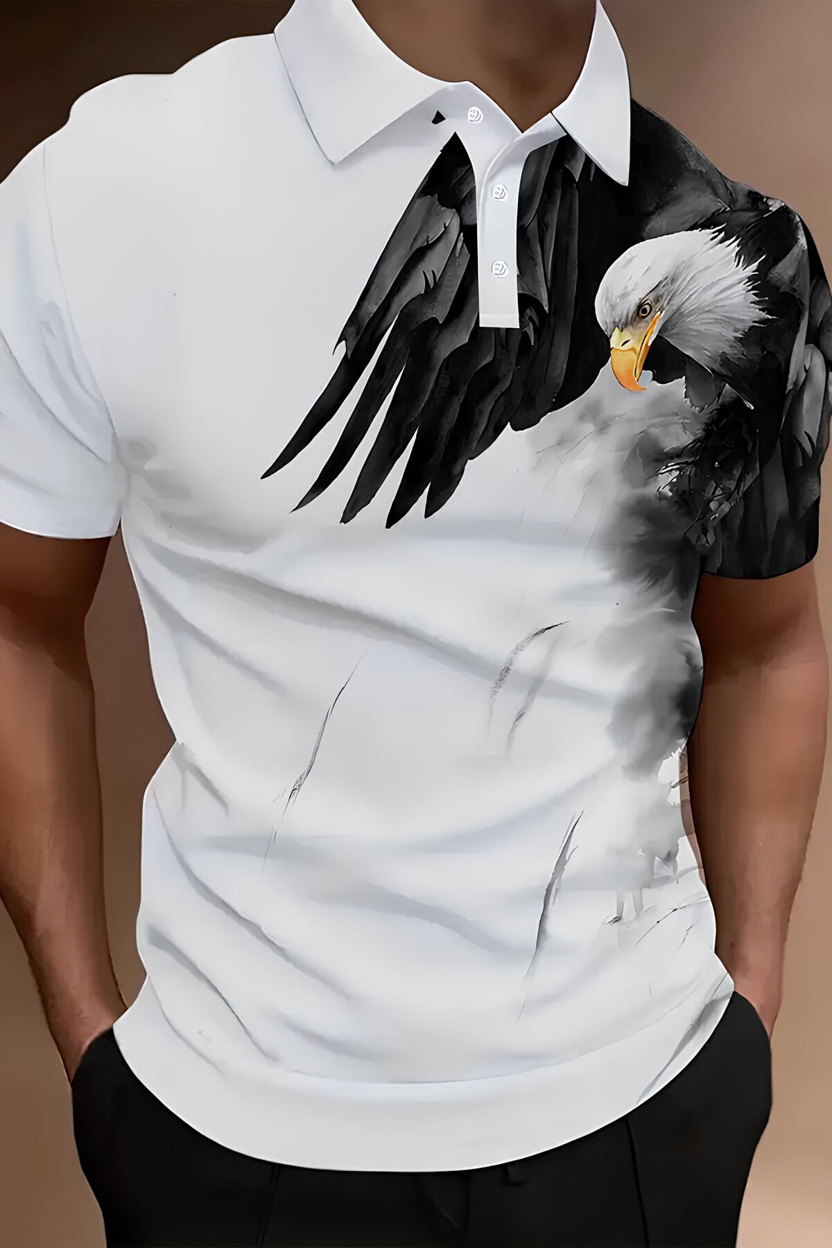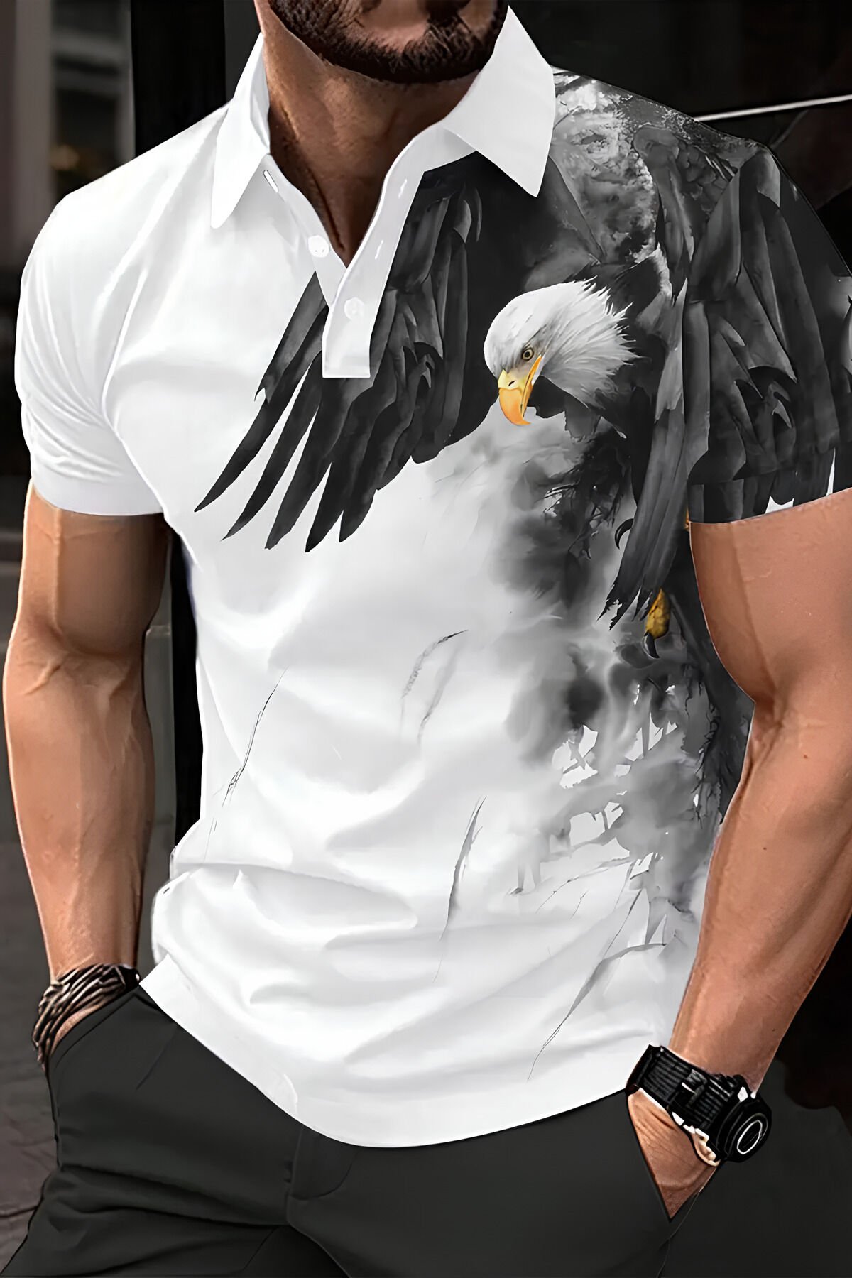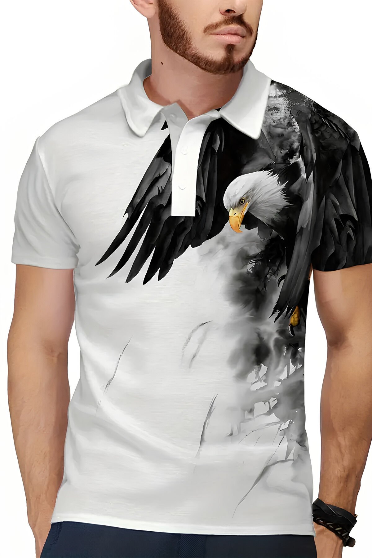 Erkek Beyaz Kartal Baskılı Spor Tişört/T-Shirt – Şık, Rahat ve Modern Tasarım