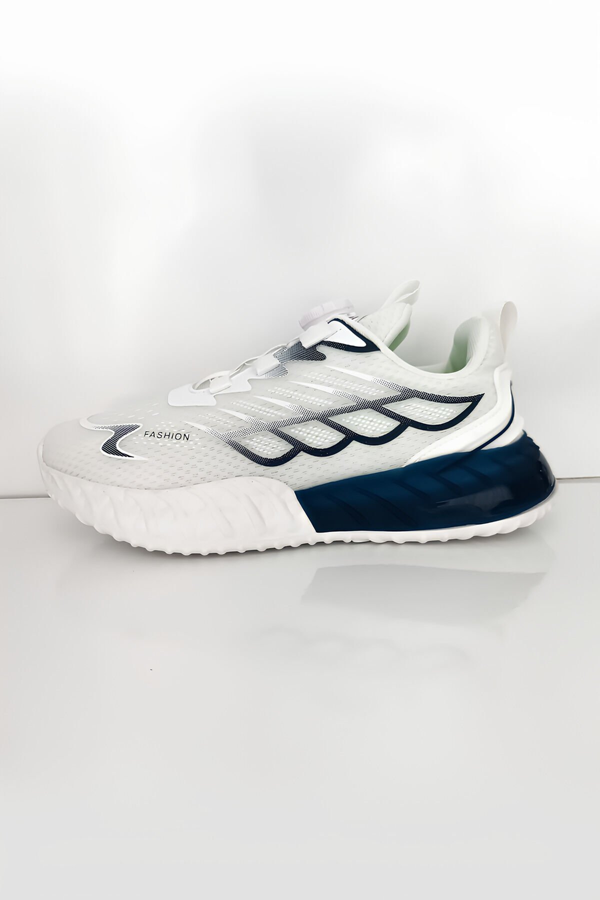 Unisex Beyaz Lacivert Detaylı Koşu ve Spor Ayakkabı - Hafif ve Konforlu Sneaker