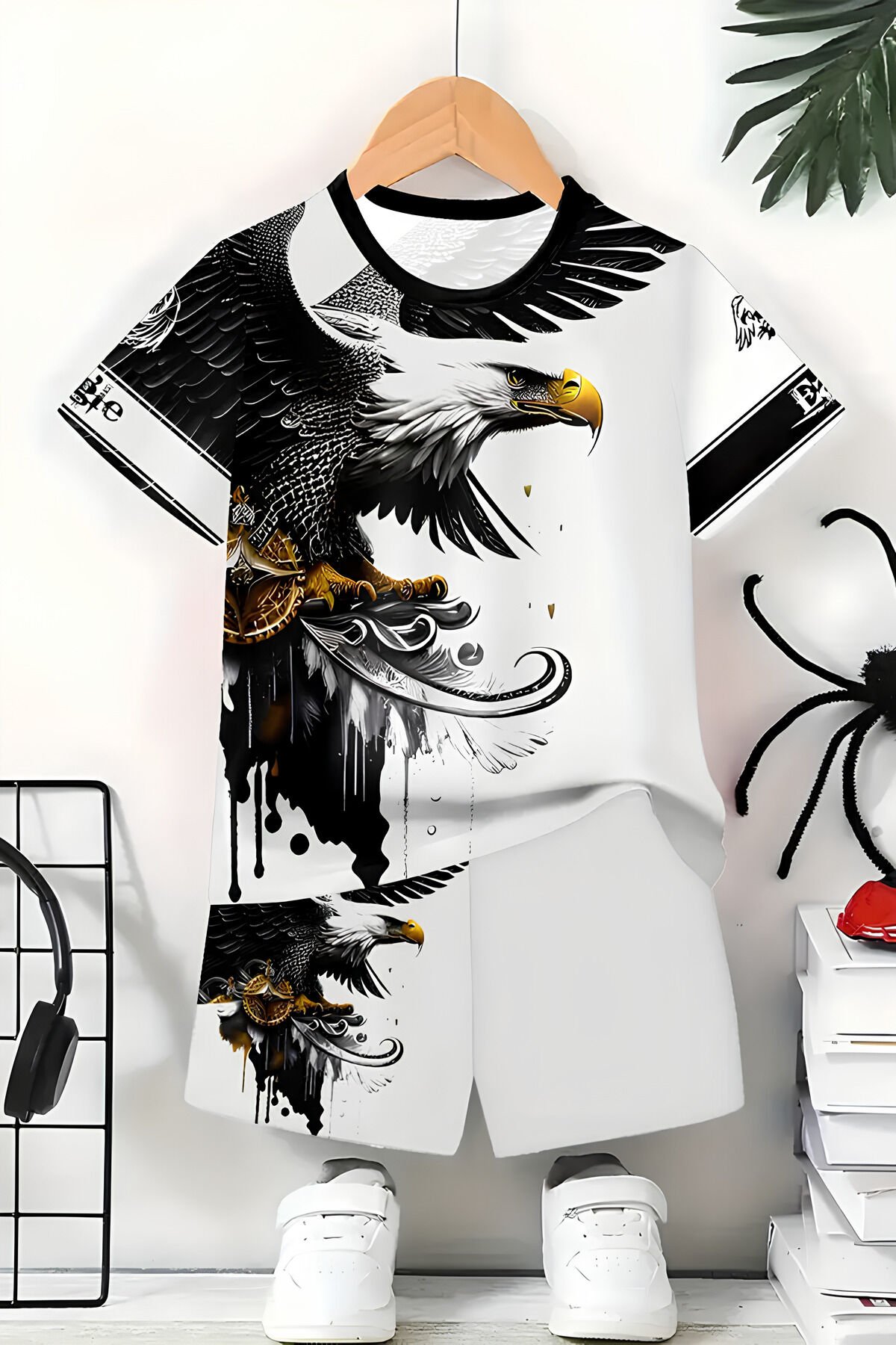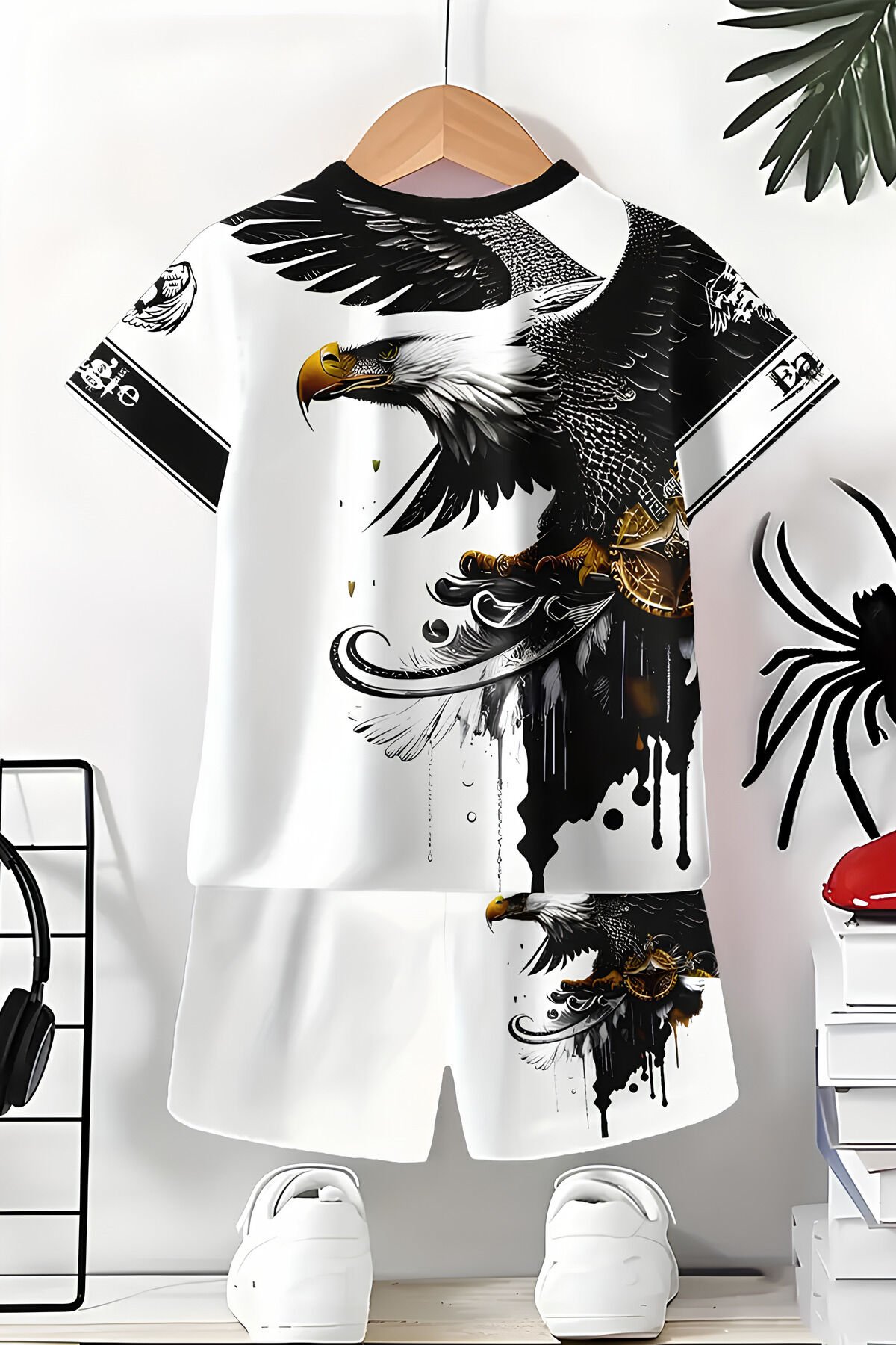 Erkek Çocuk Kartal Baskılı Tişört ve Şort Takımı – %100 Polyester, Şık ve Rahat Yazlık İkili Set