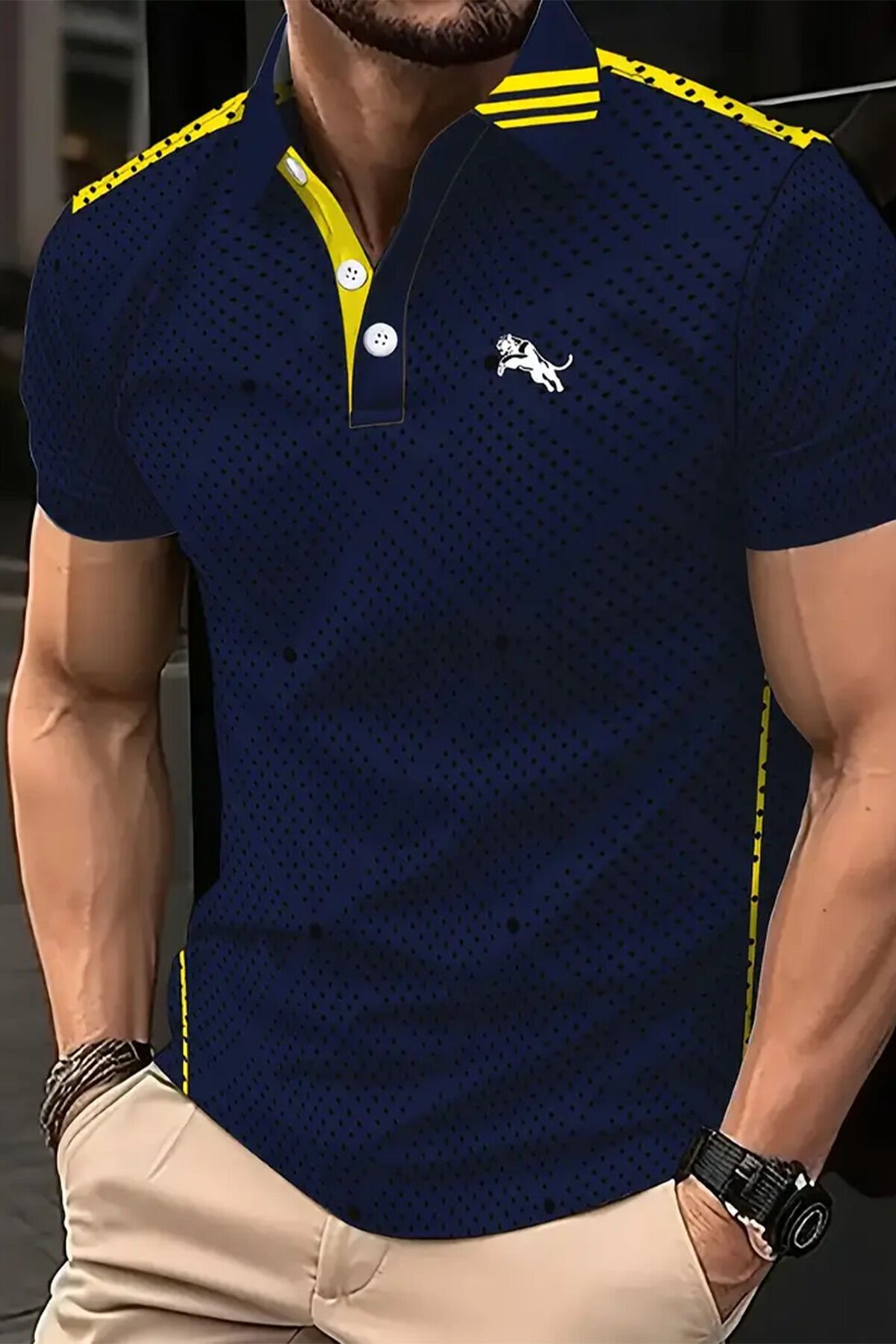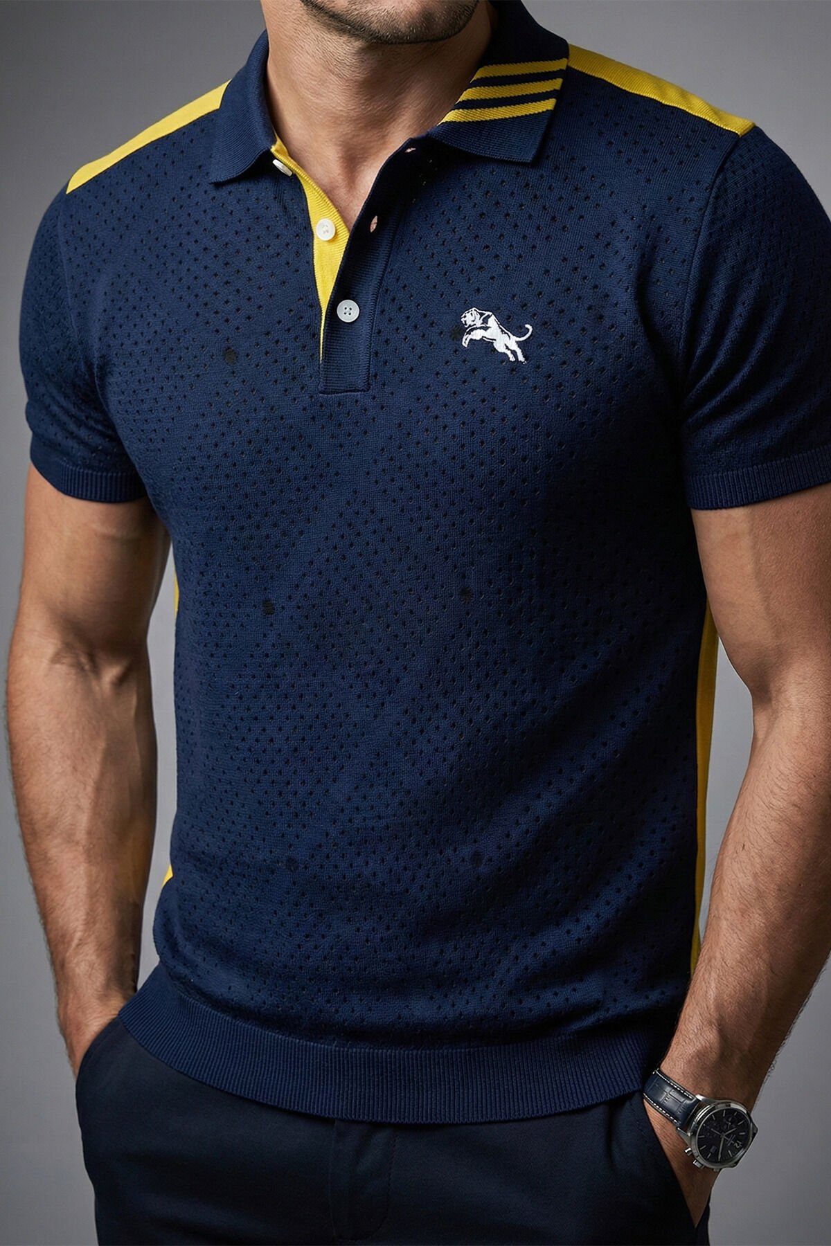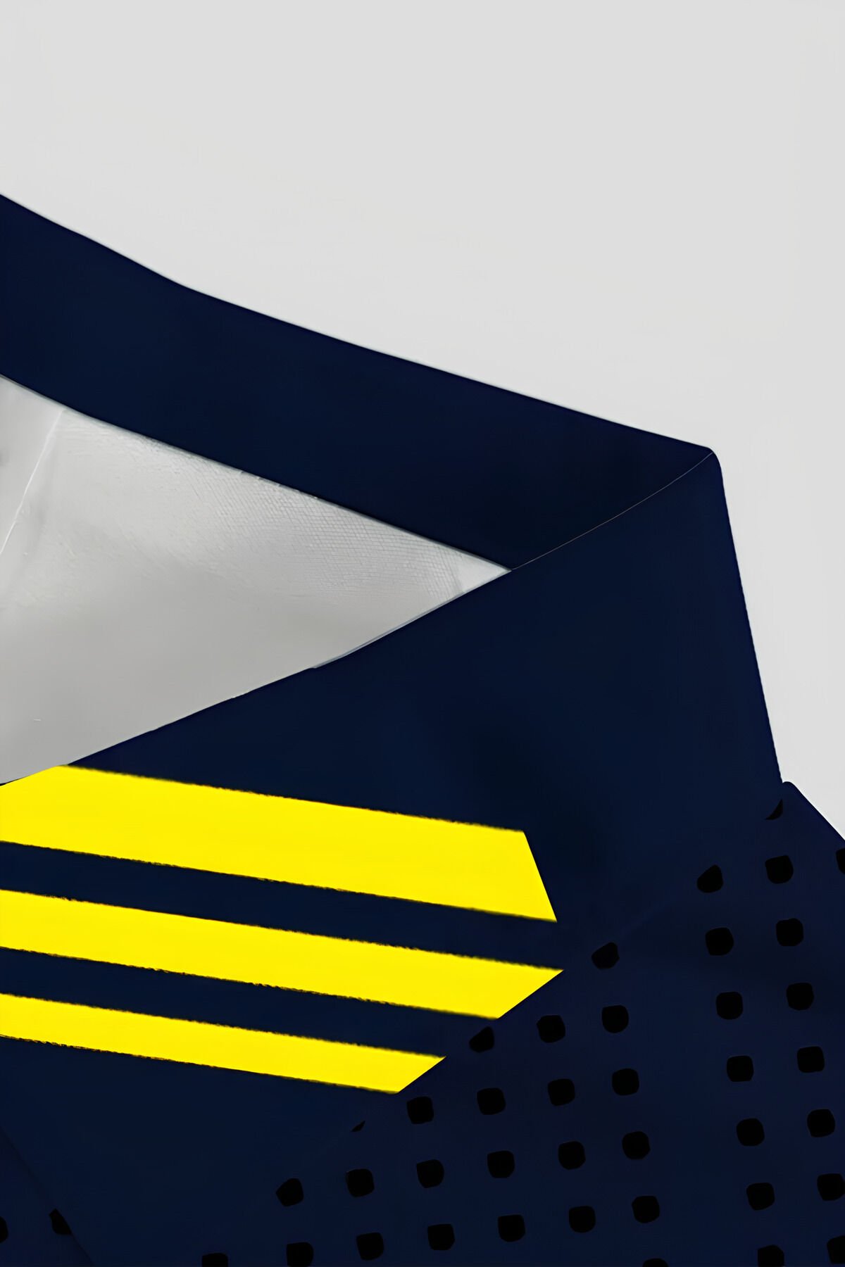 Erkek Spor Polo Yaka Tişört/T-Shirt – Lacivert Üzerine Sarı Şeritli Model