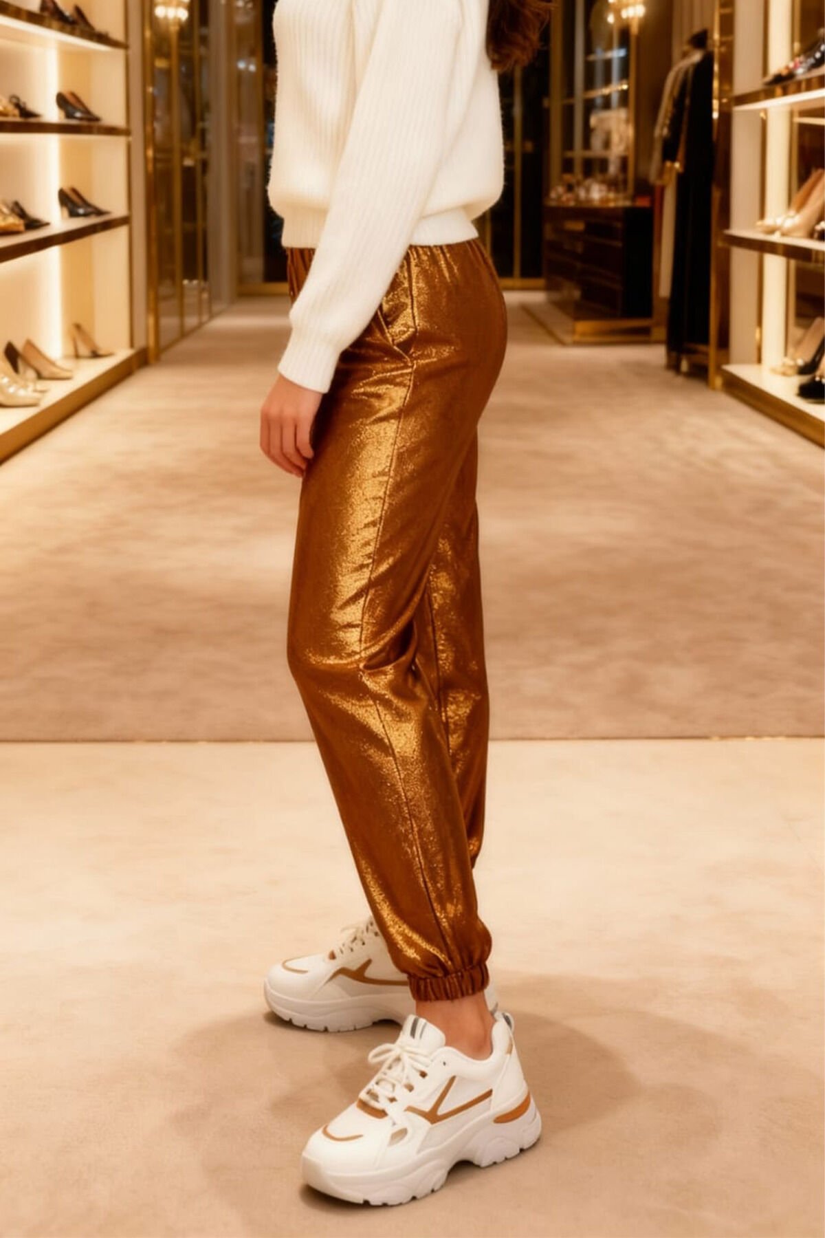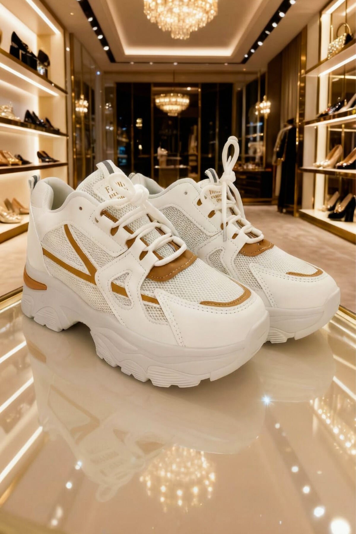 Kadın Beyaz Kahverengi Detaylı Kalın Taban Spor Ayakkabı - Rahat ve Şık Sneaker