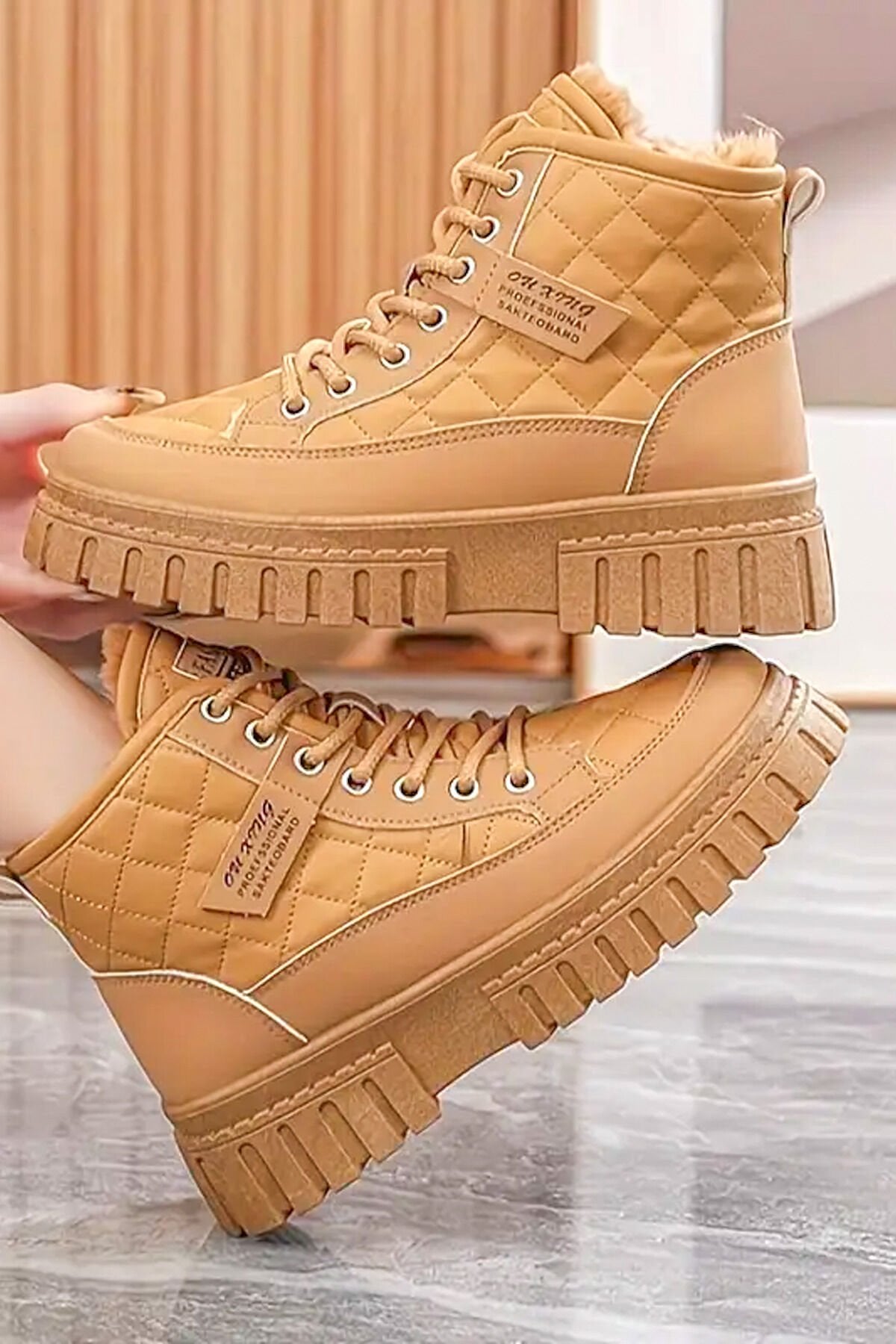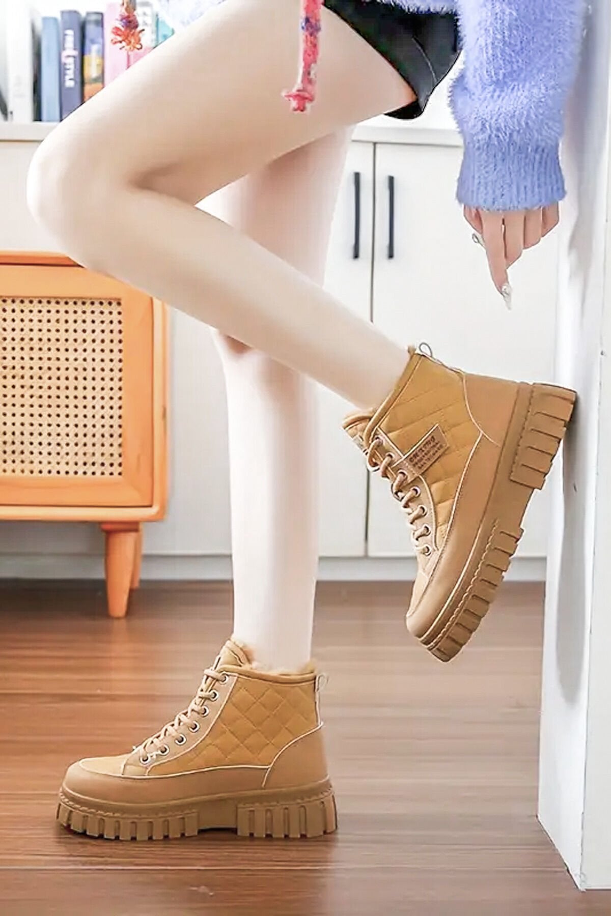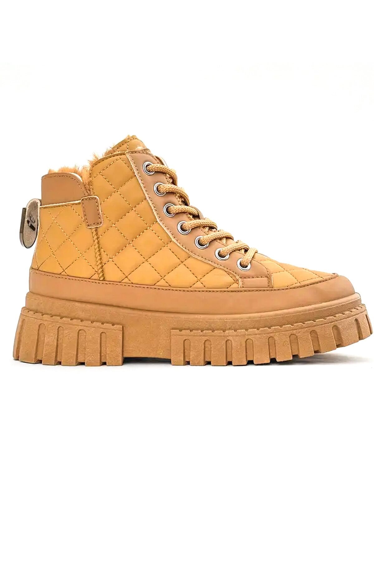 Kadın Kürklü Platform Topuklu Bağcıklı Suni Deri Günlük Bot
