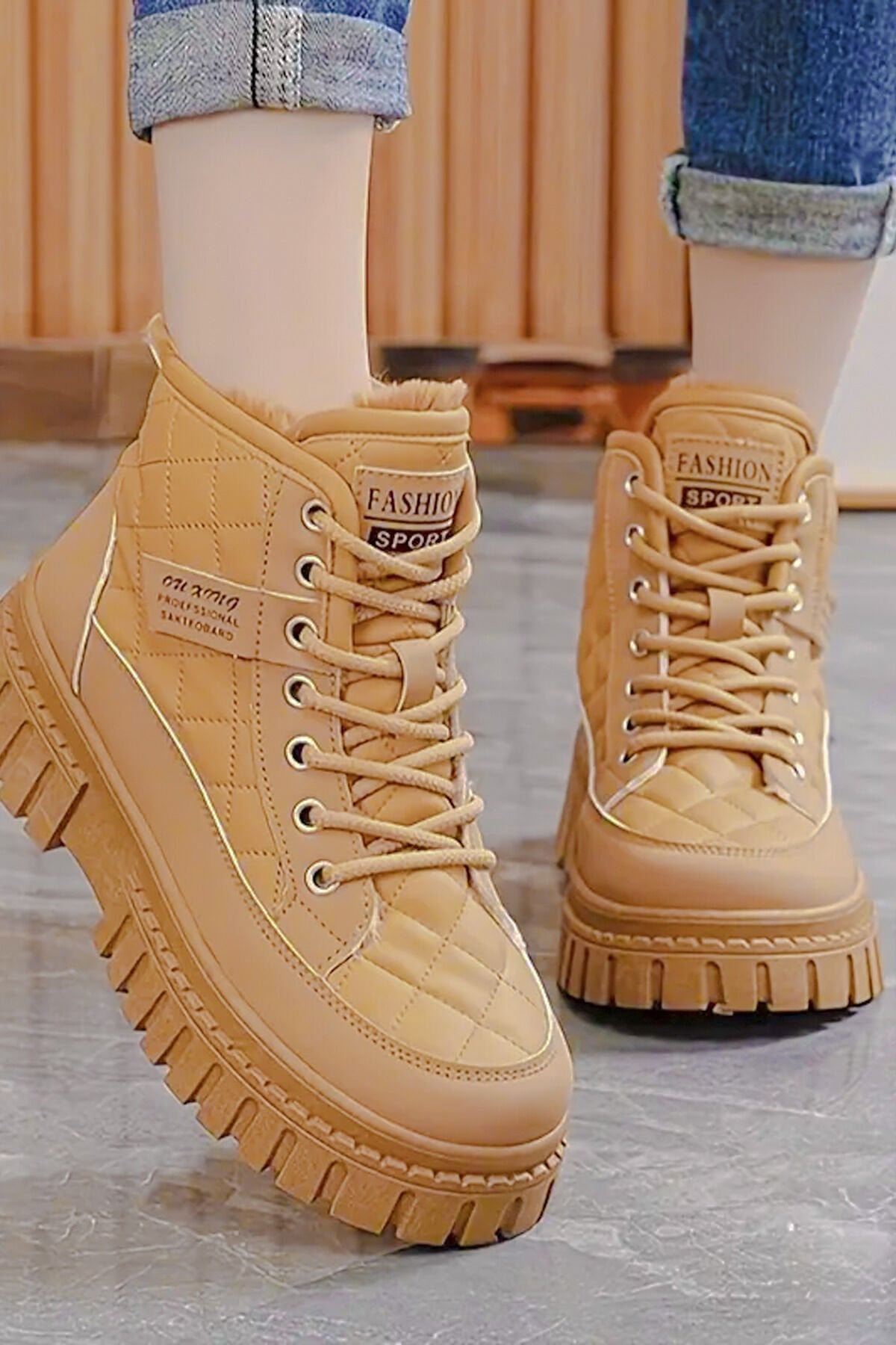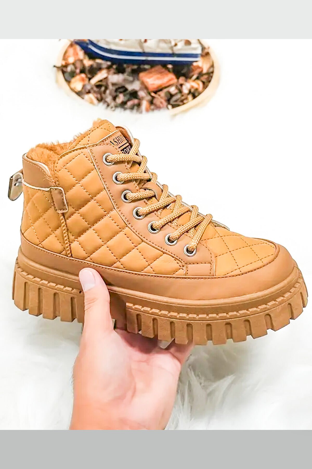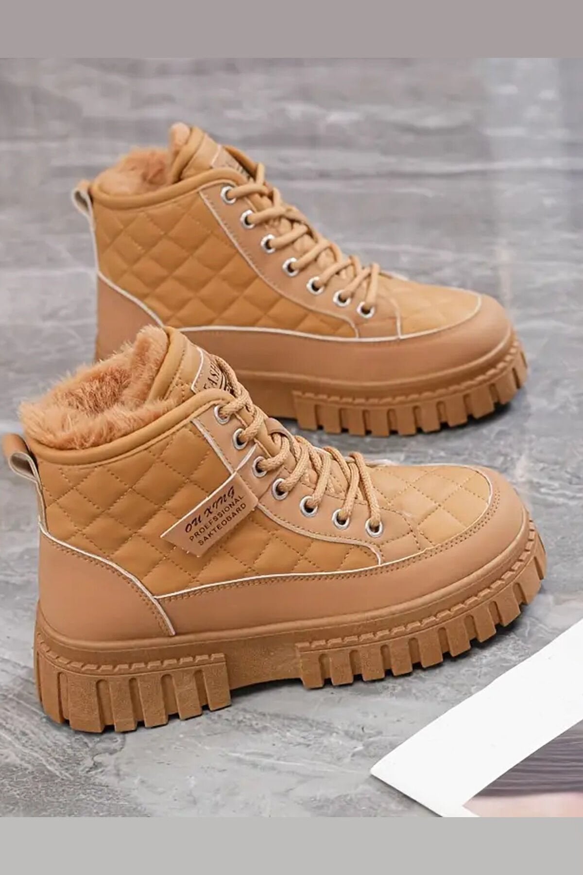 Kadın Kürklü Platform Topuklu Bağcıklı Suni Deri Günlük Bot