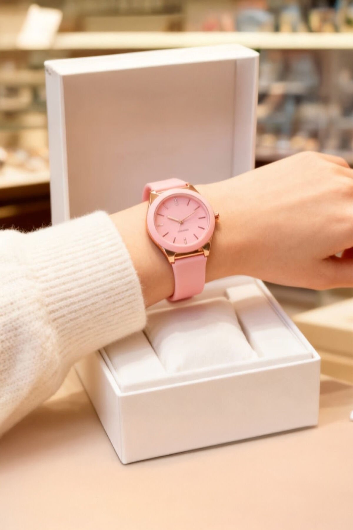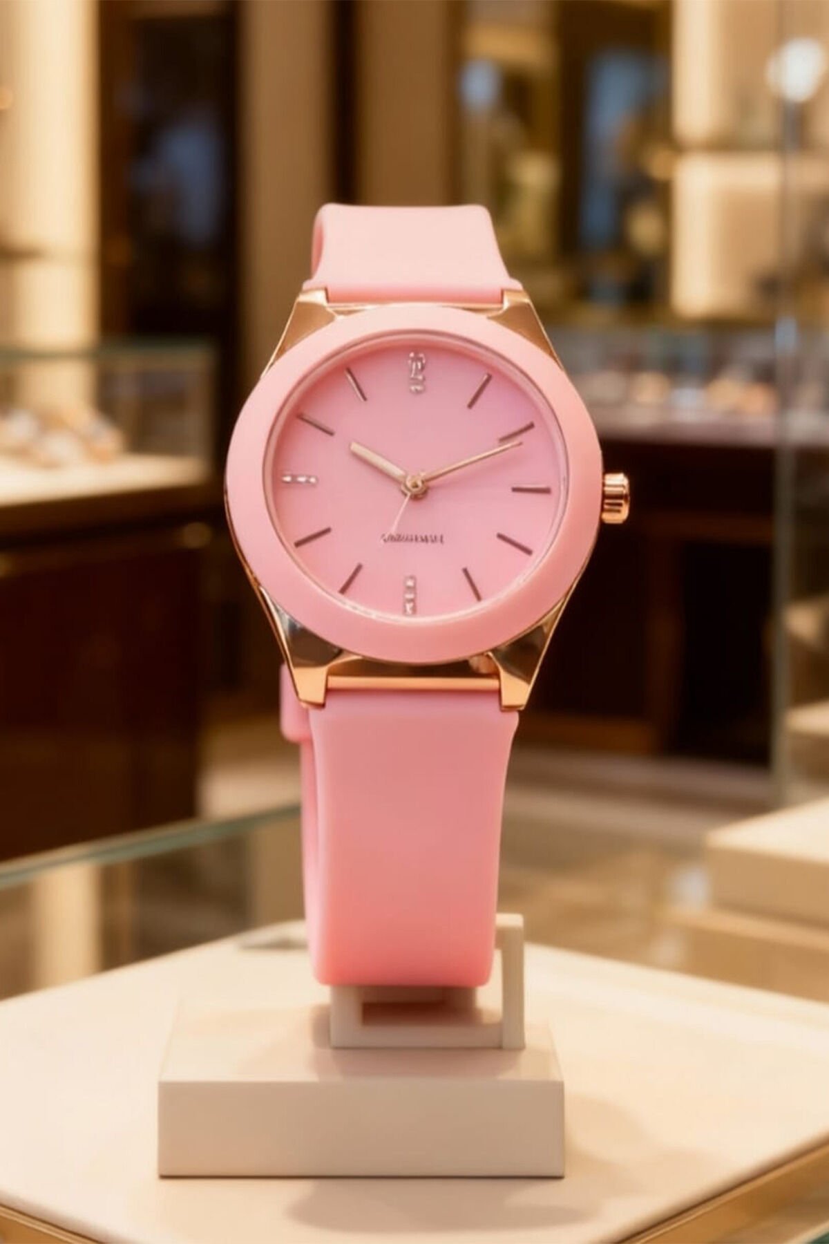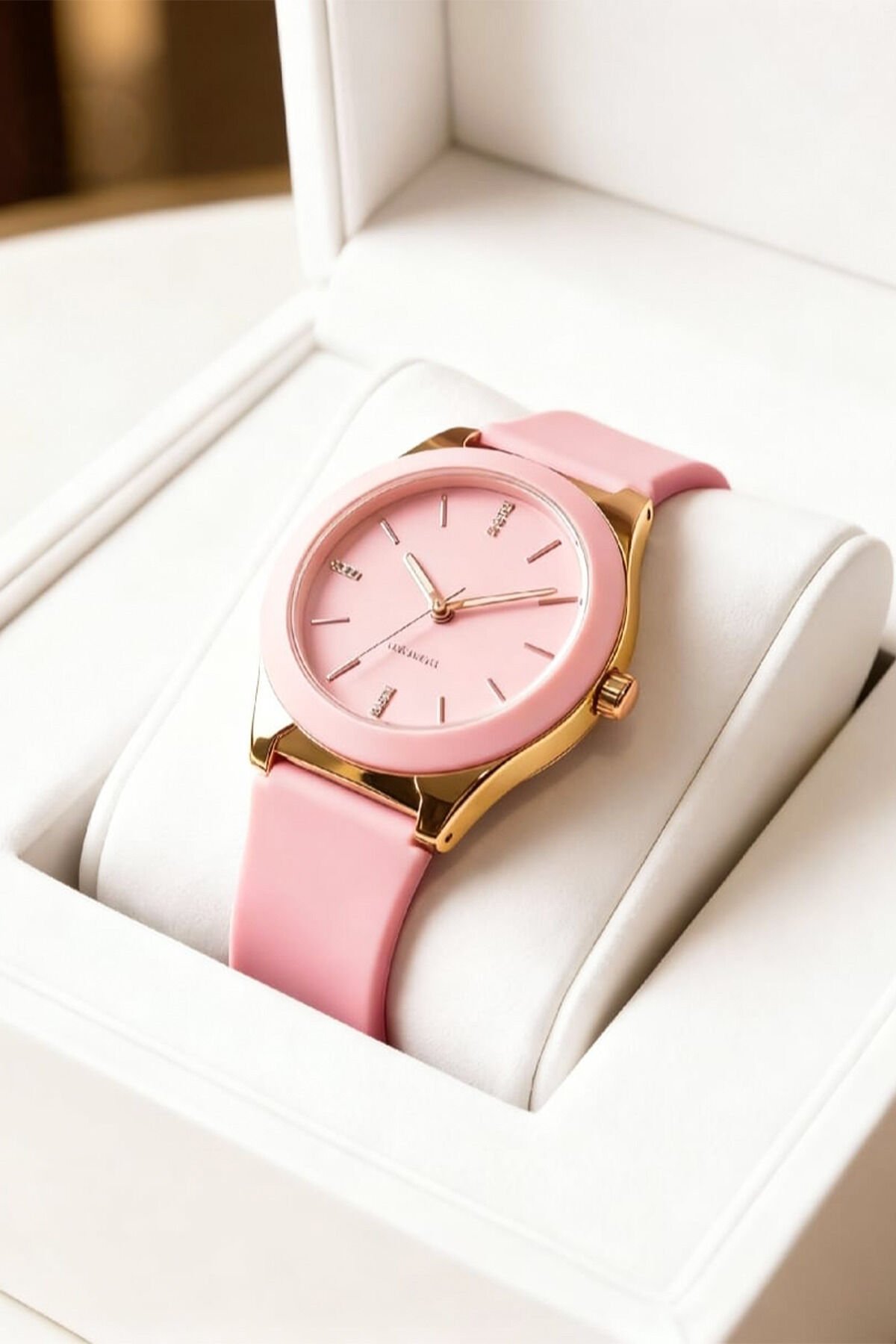 Kadın Pembe Kol Saati – Rose Gold Kasa, Pembe Silikon Kordon, Zarif & Şık Tasarım