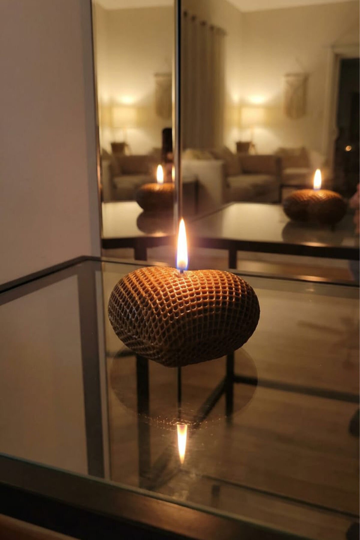 Kalpli Petek Dokulu Dekoratif Mum – El Yapımı, Doğal Görünümlü Şık Tasarım