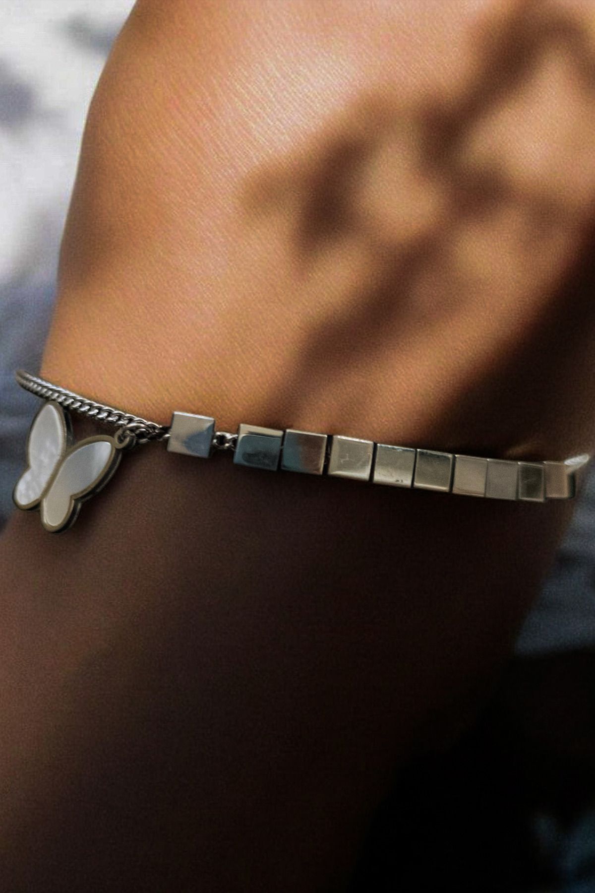 Kelebekli Modern Çelik Bileklik (Gümüş Renk)