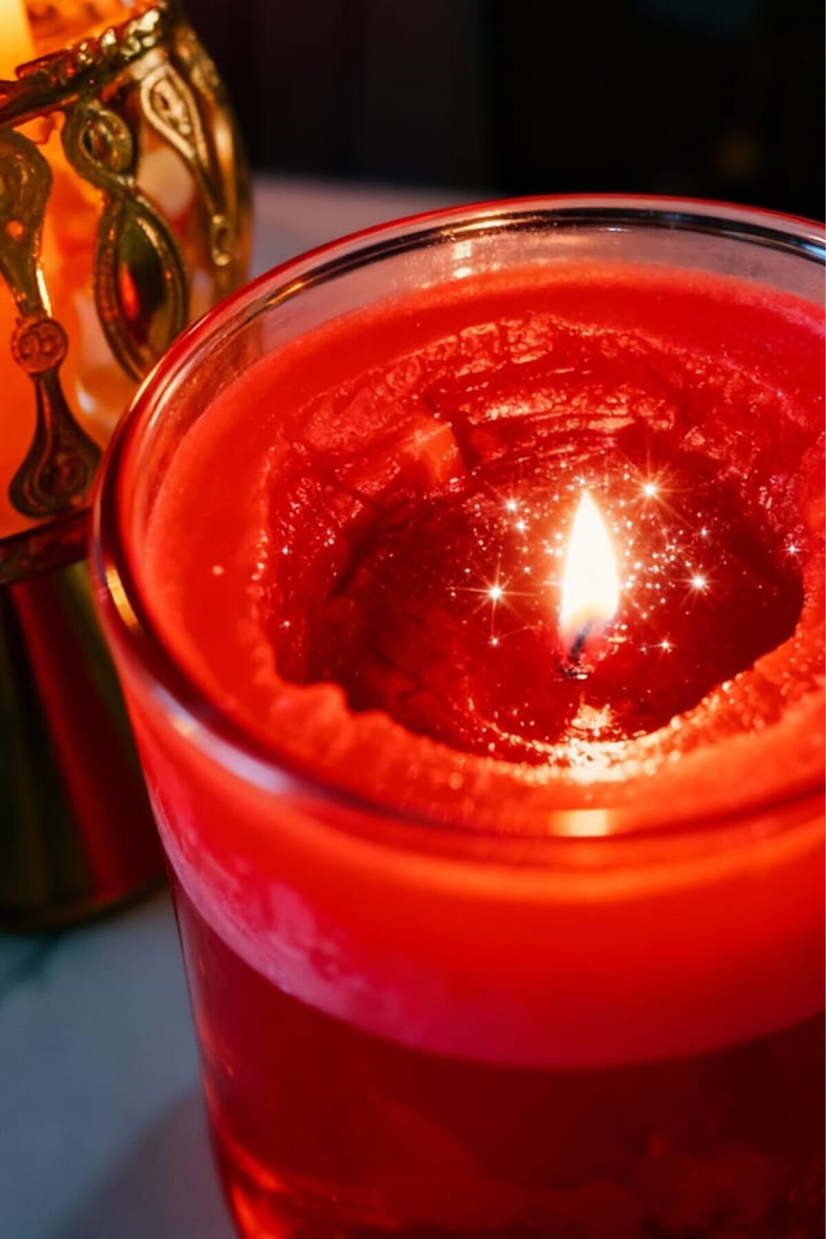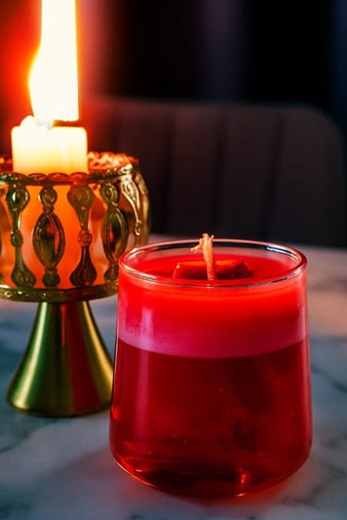 Kırmızı Cam Kavanoz Dekoratif Mum – Romantik & Şık Tasarım