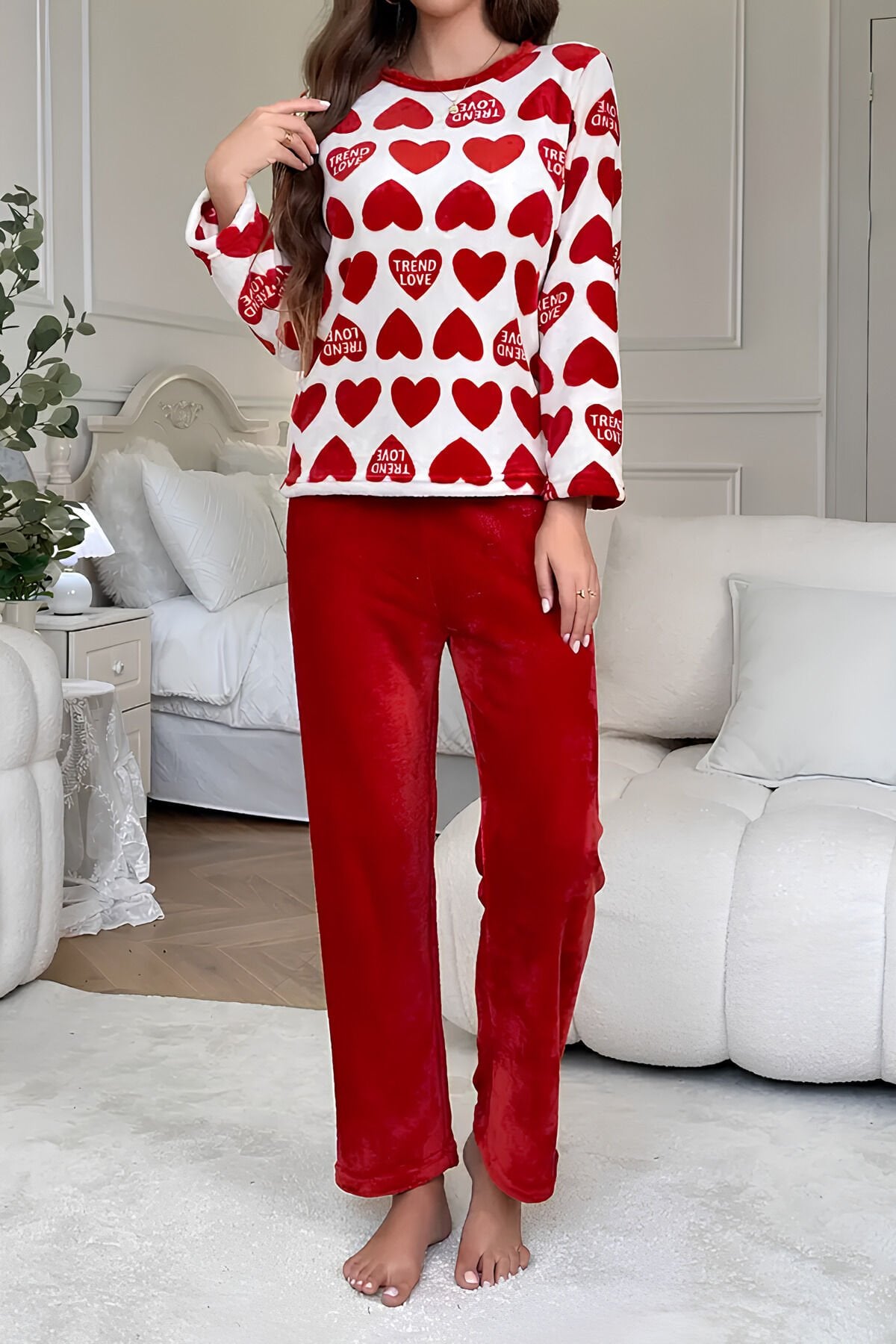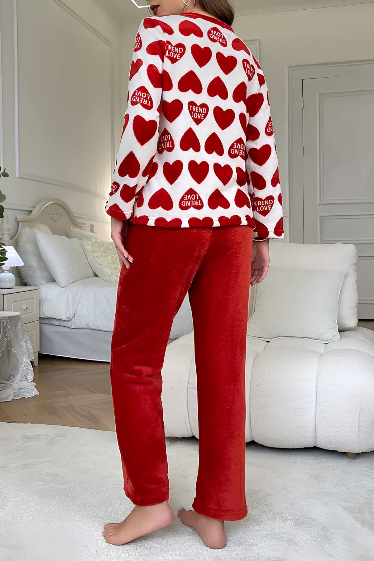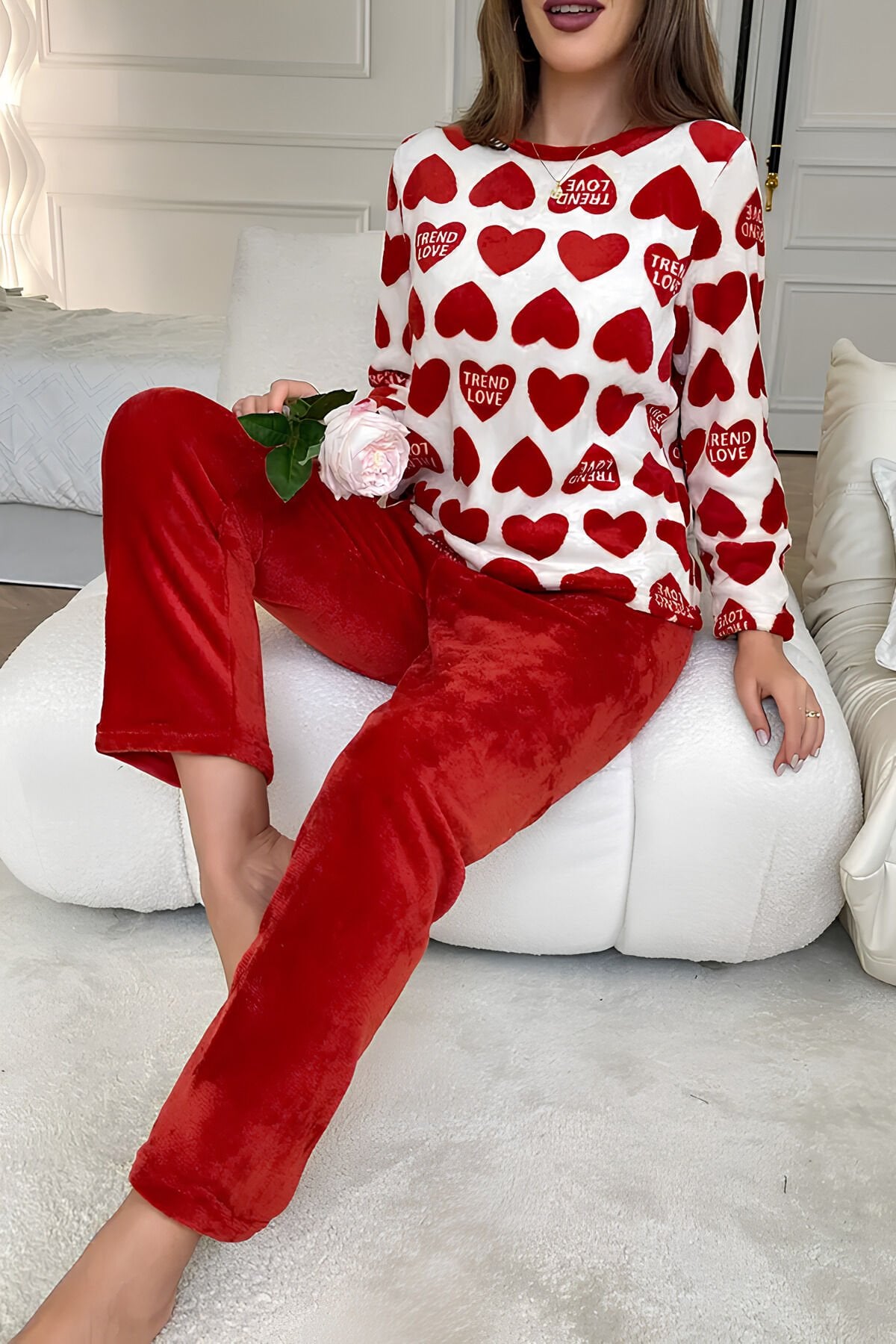Kırmızı Renk Trend Love Desenli Kadın Eşofman Takımı - Sonbahar ve Kış İçin Sıcak ve Şık