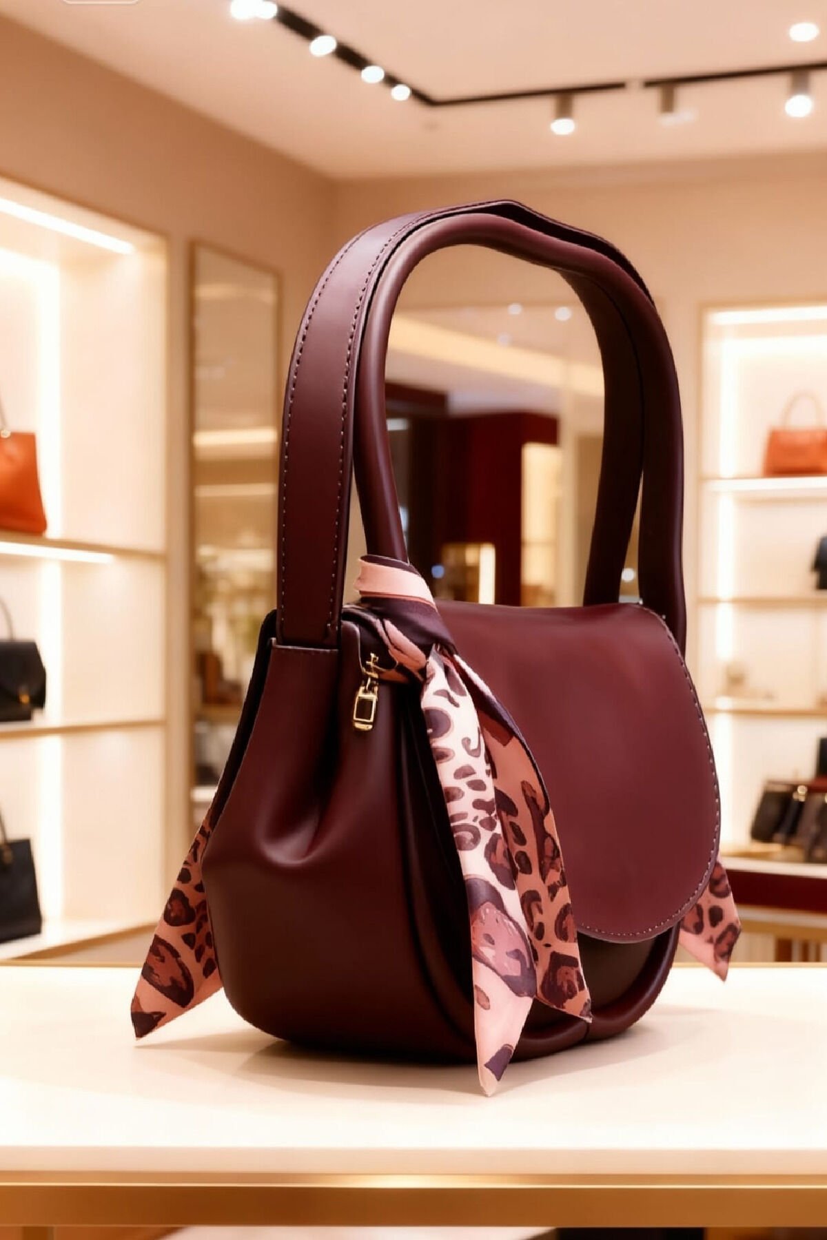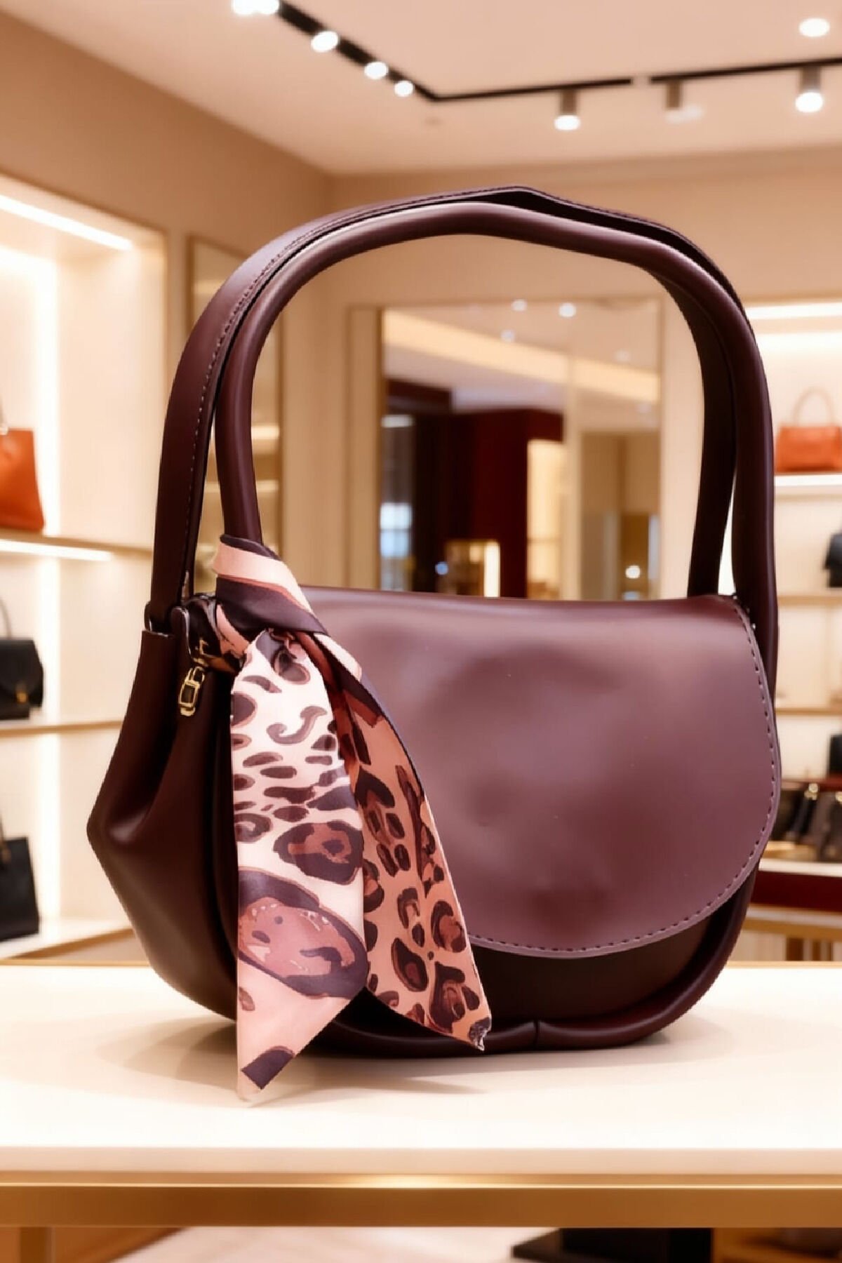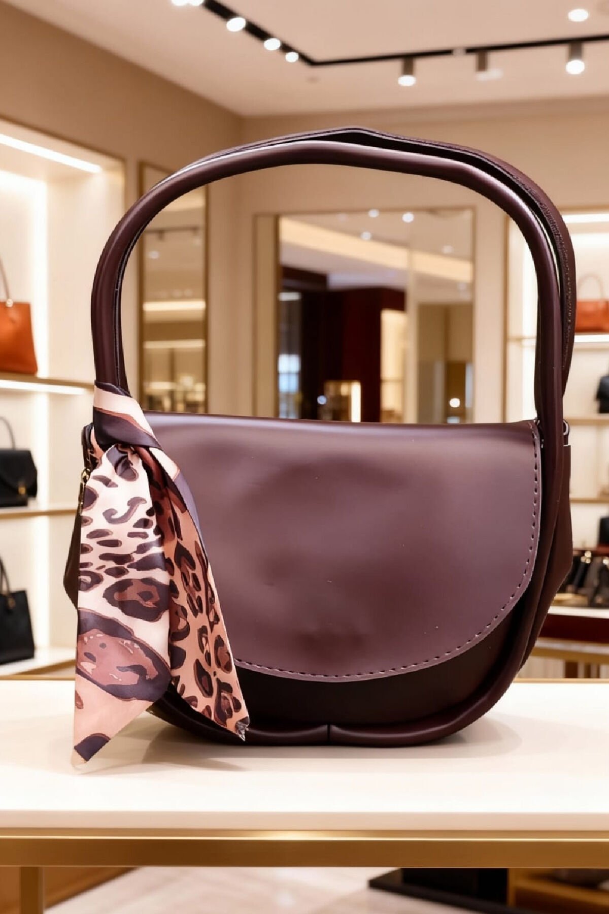 Leopar Detaylı Bordonun Zarafeti Kadın Omuz Çantası - Şık ve Modern Tasarım