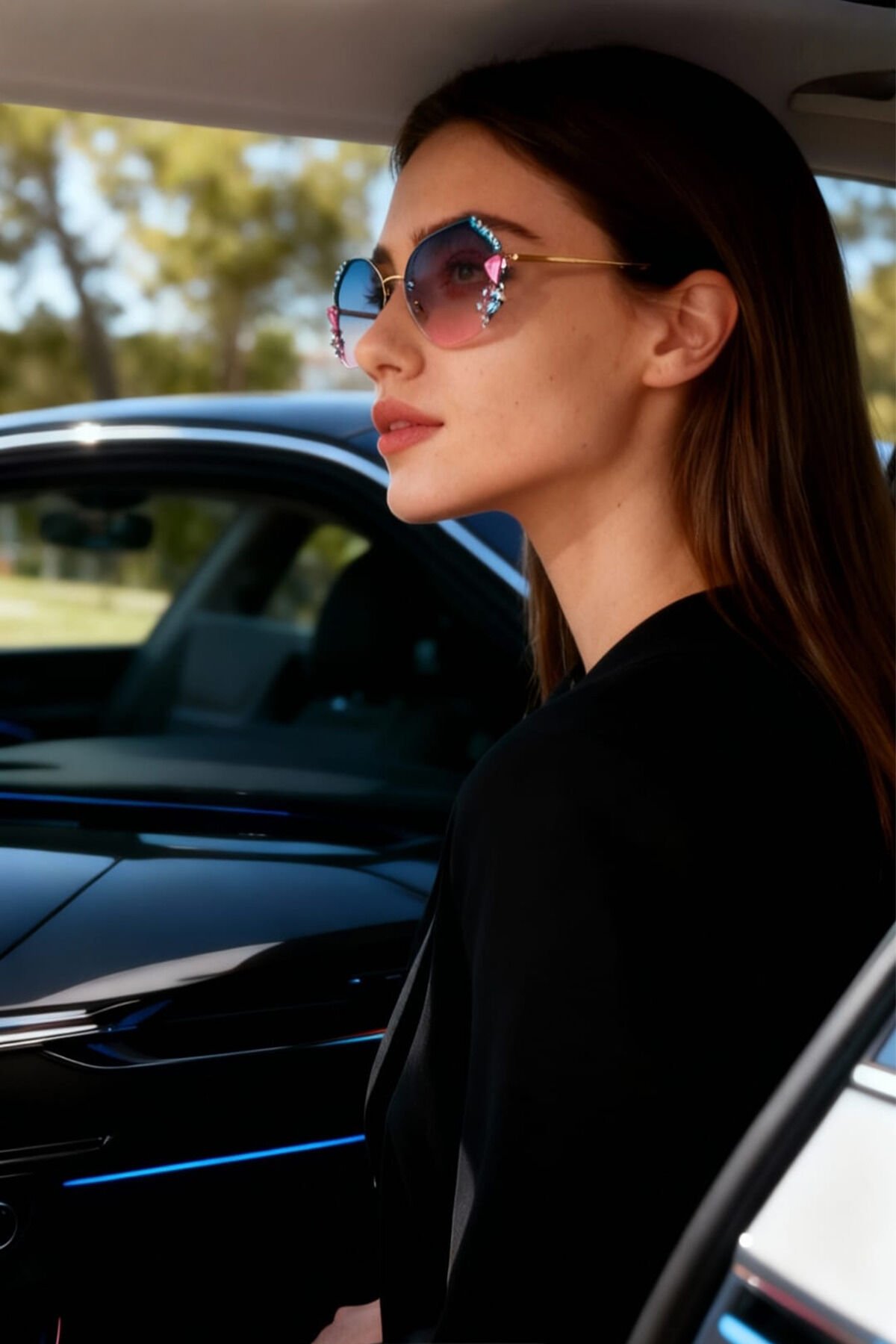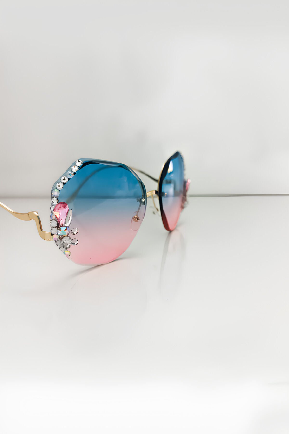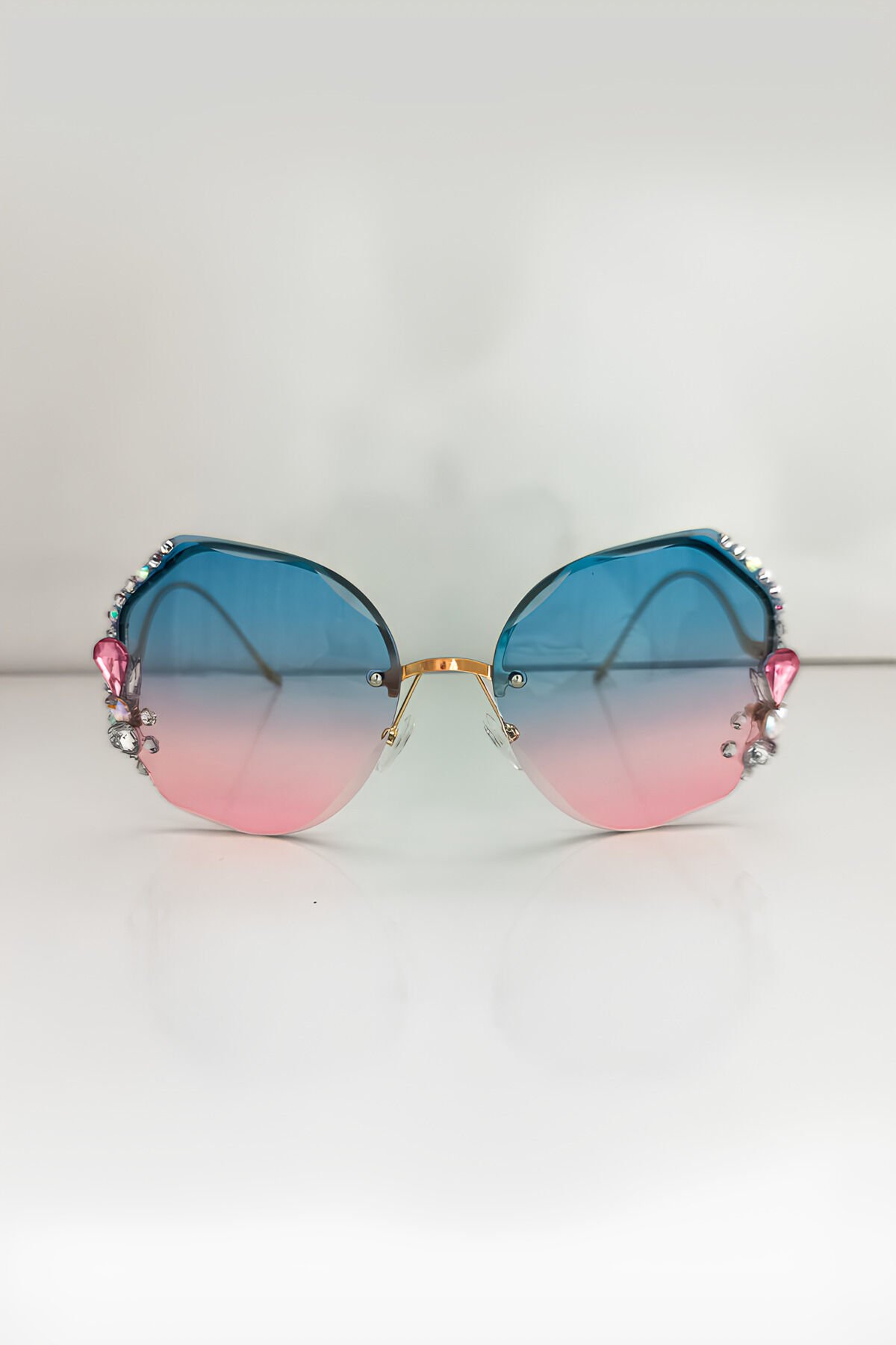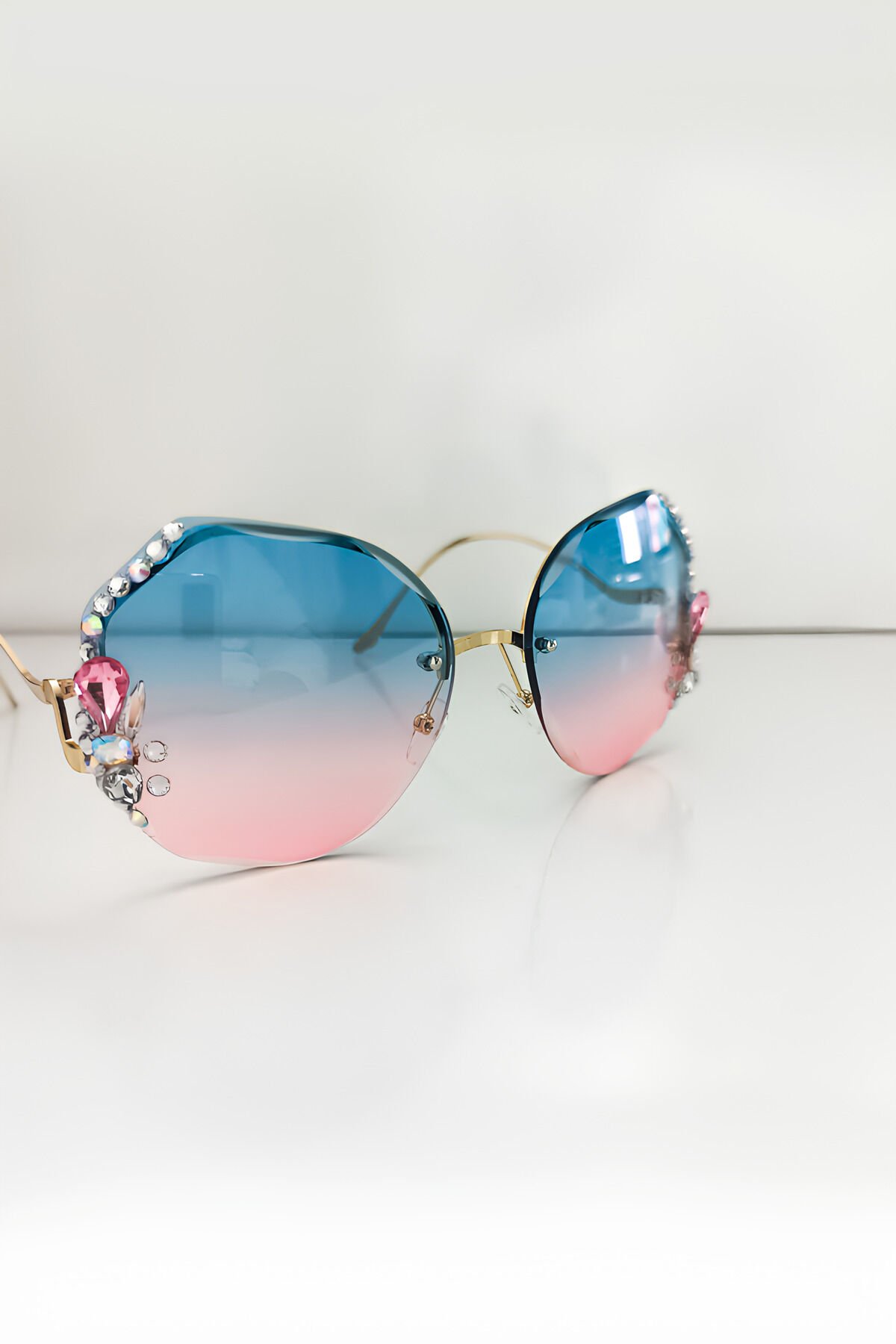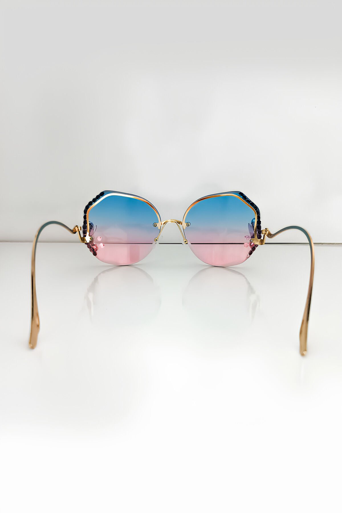 Mavi ve Pembe Renkli, Metal Çerçeveli Kadın Güneş Gözlüğü