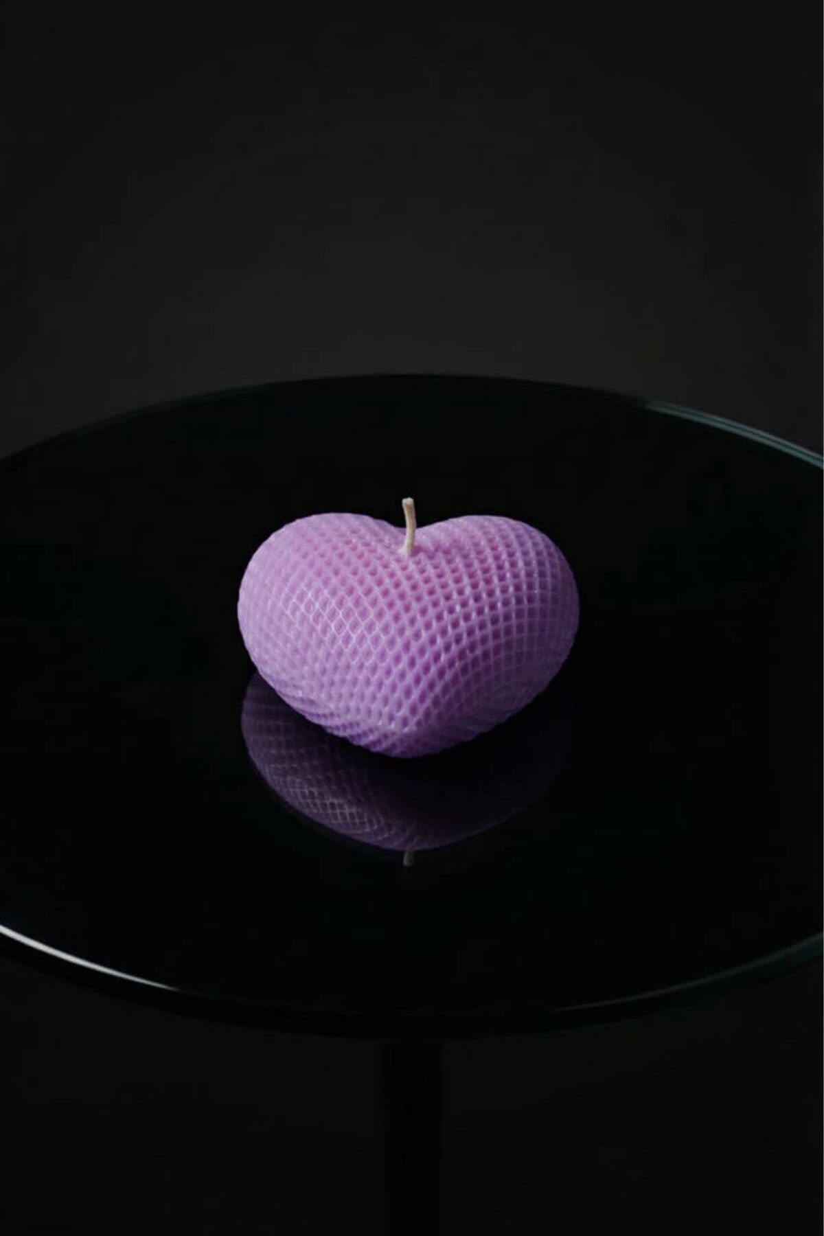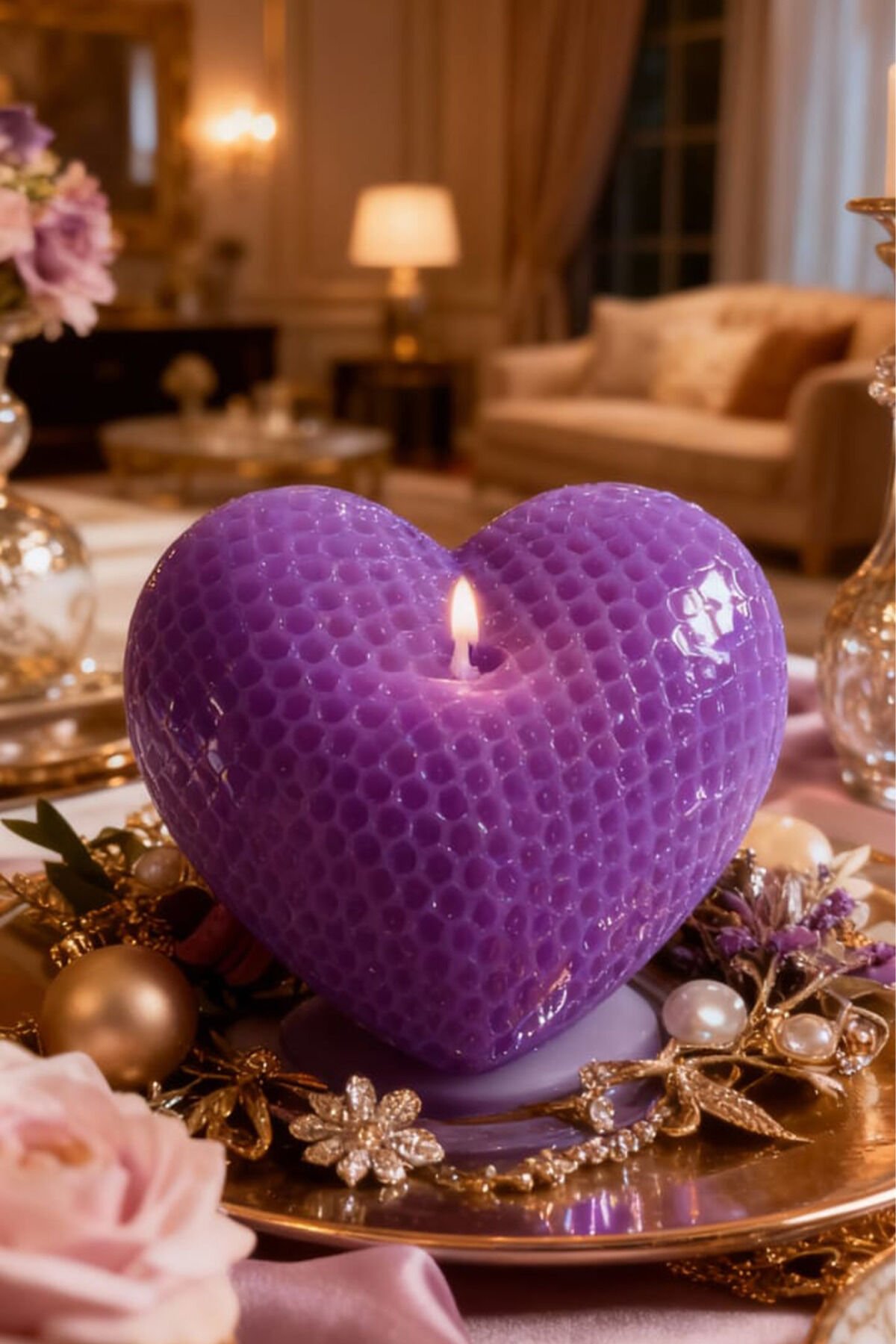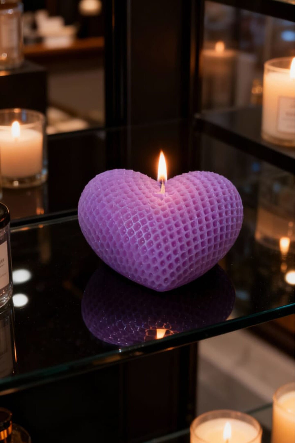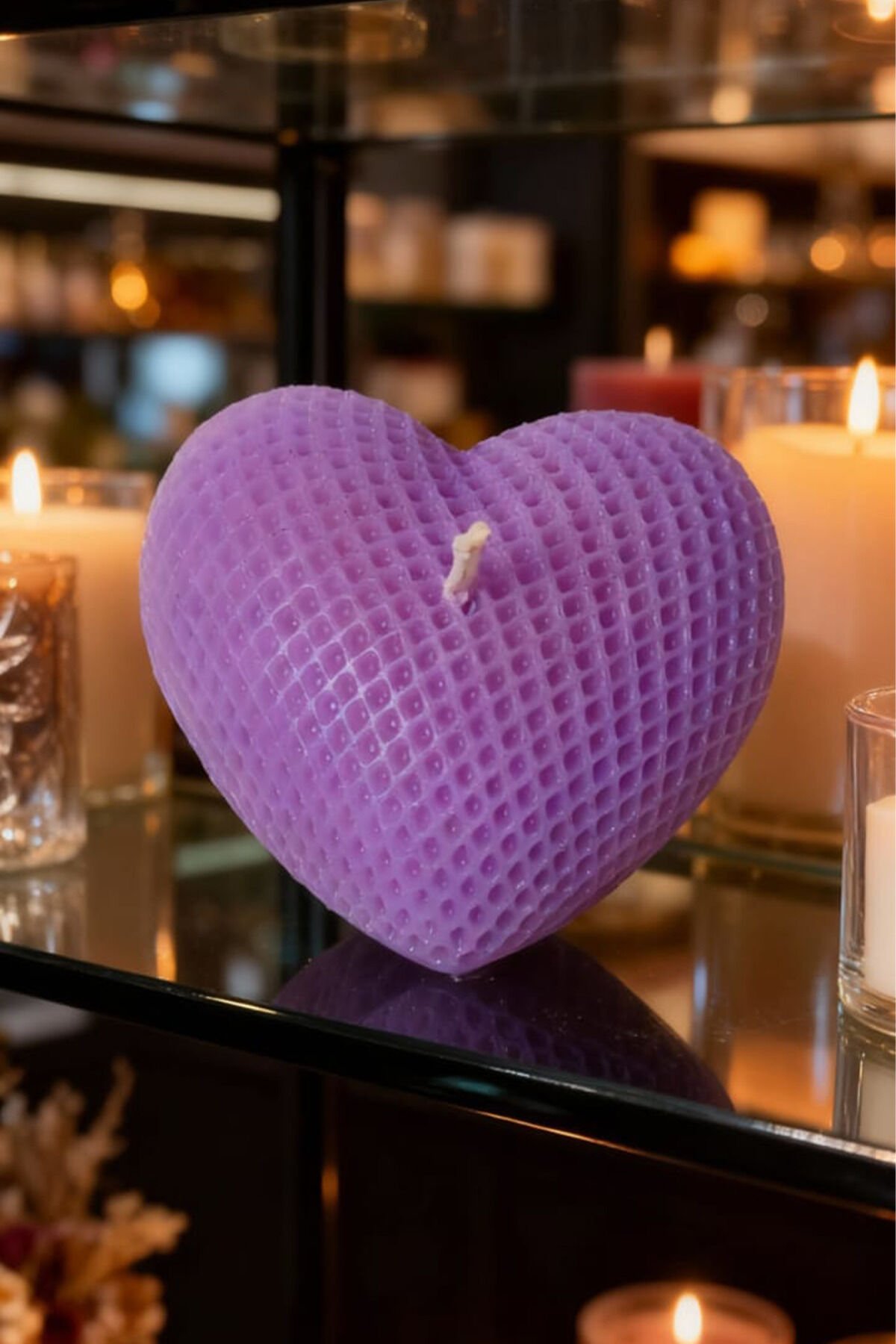 Mor Kalp Şeklinde Petek Dokulu Dekoratif Mum – El Yapımı, Modern Tasarım