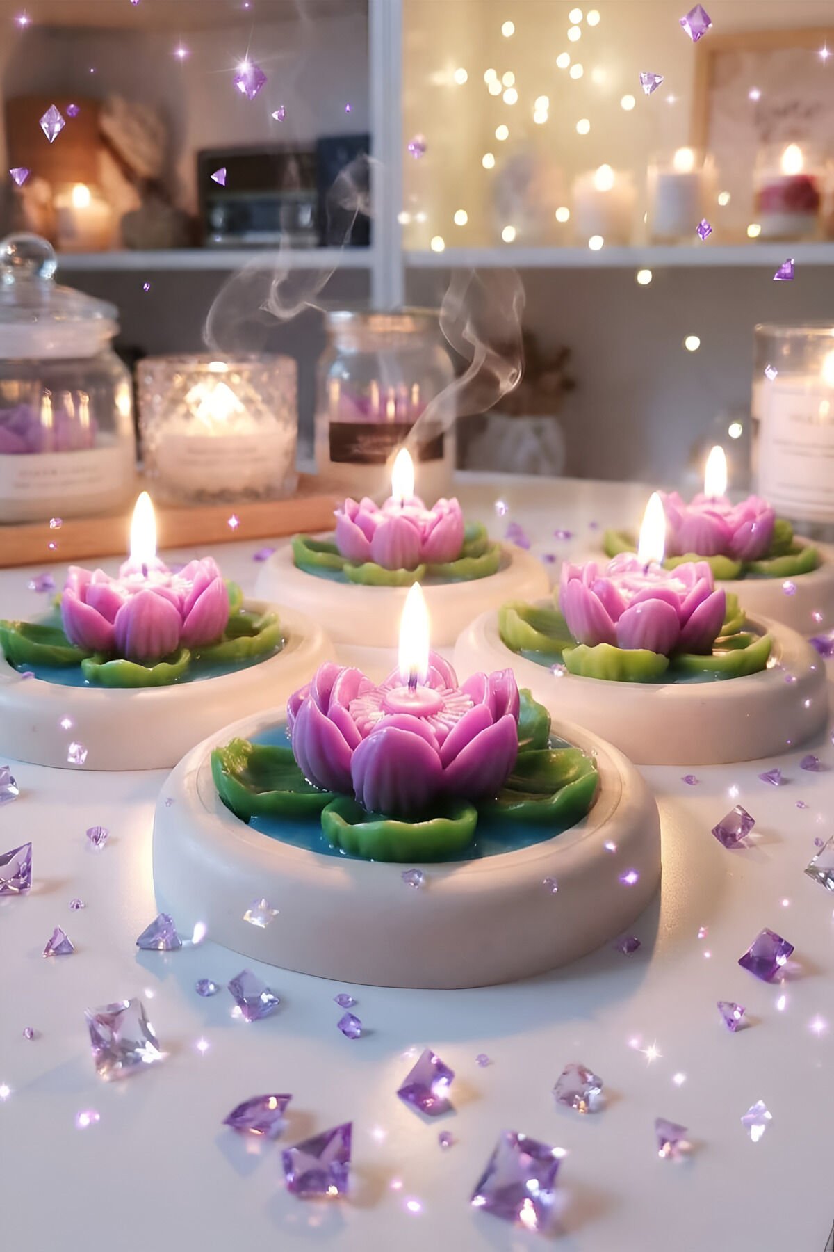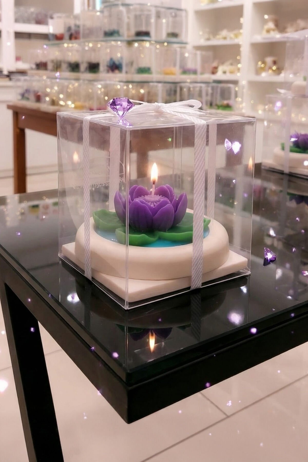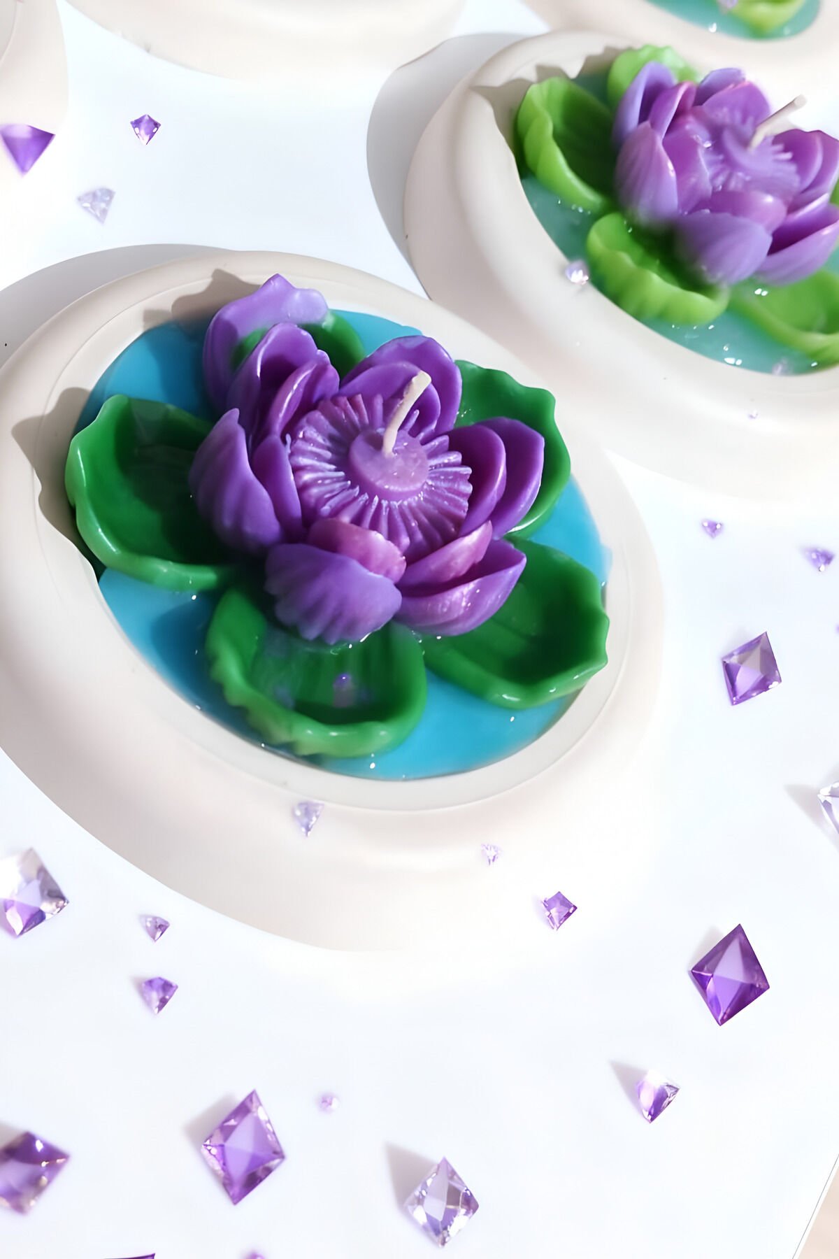 Mor Lotus Çiçek Mum – El Yapımı Dekoratif Aromatik Mum