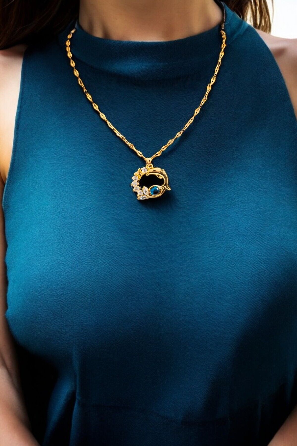 Okyanusun Işıltısı Çelik Kolye Ve Çiçek Küpe (MAVİ RENK KADIN KOLYE)