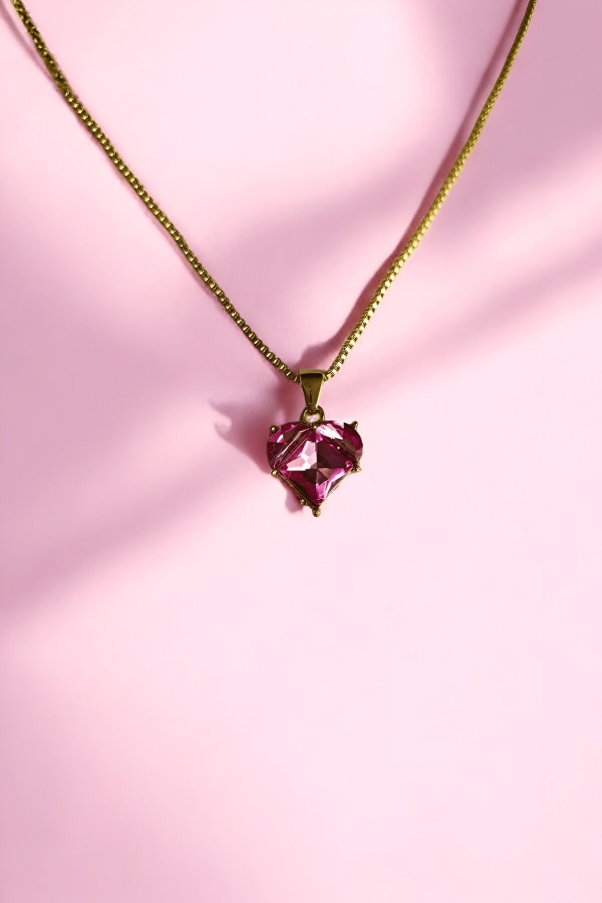 Pembe Kalpli Zarif Çelik Kolye Ve Saç Tokası