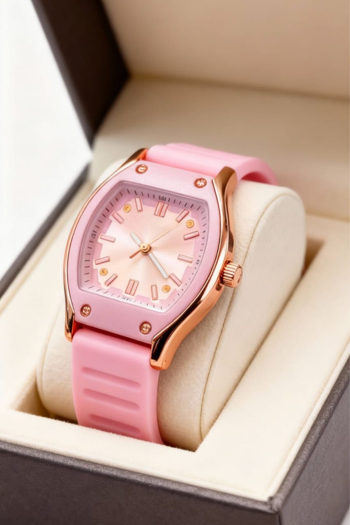 Pembe Silikon Kordon Kadın Kol Saati – Rose Gold Kasa, Modern & Zarif Tasarım
