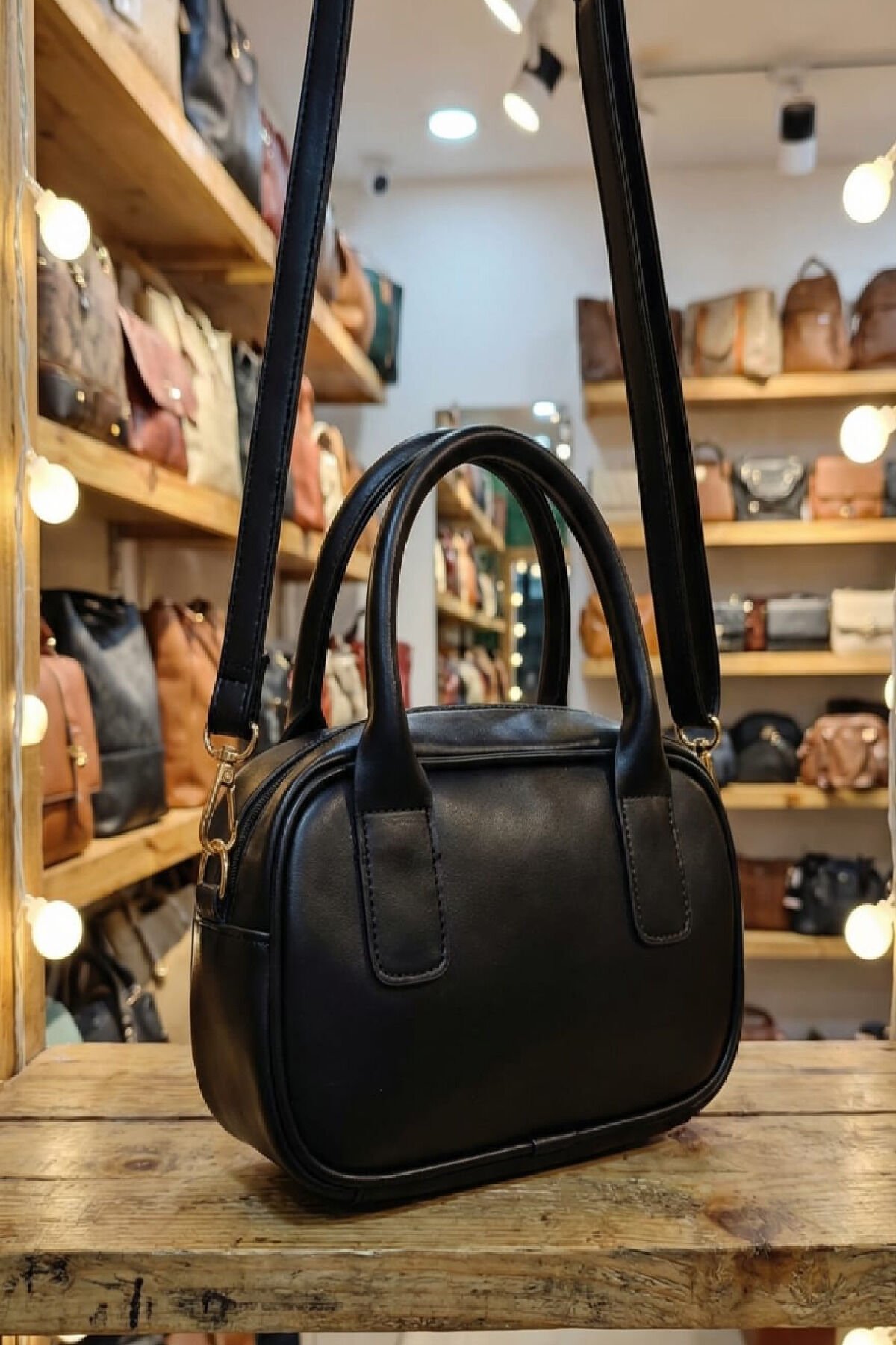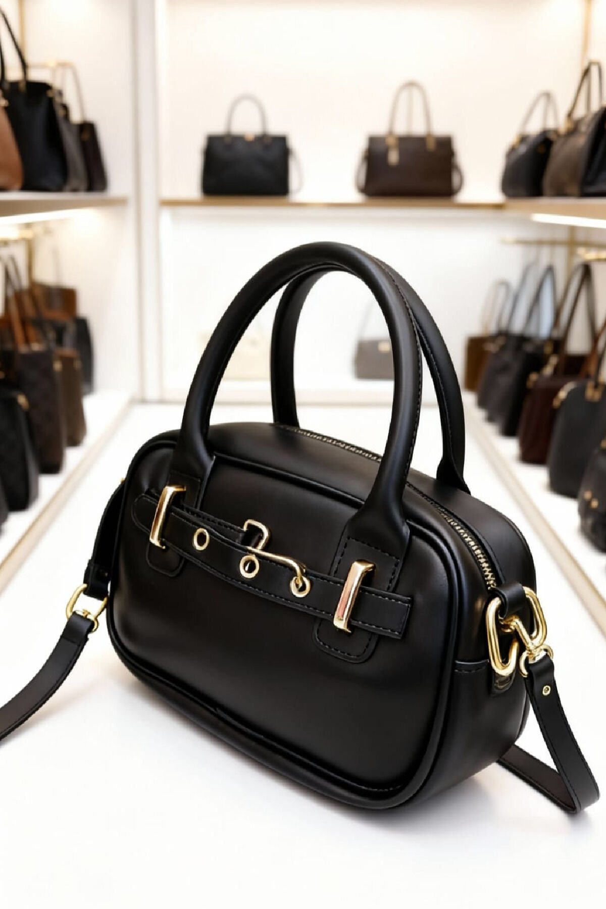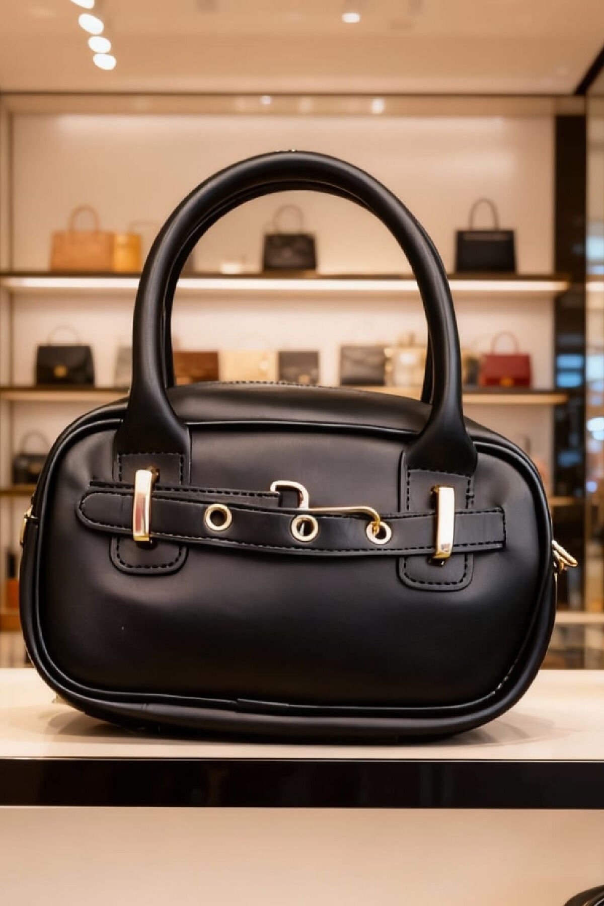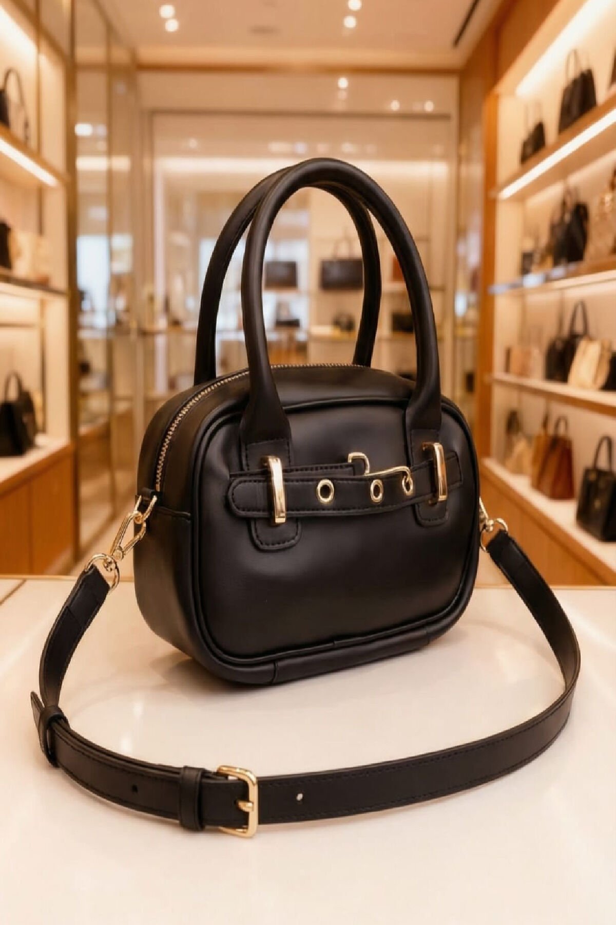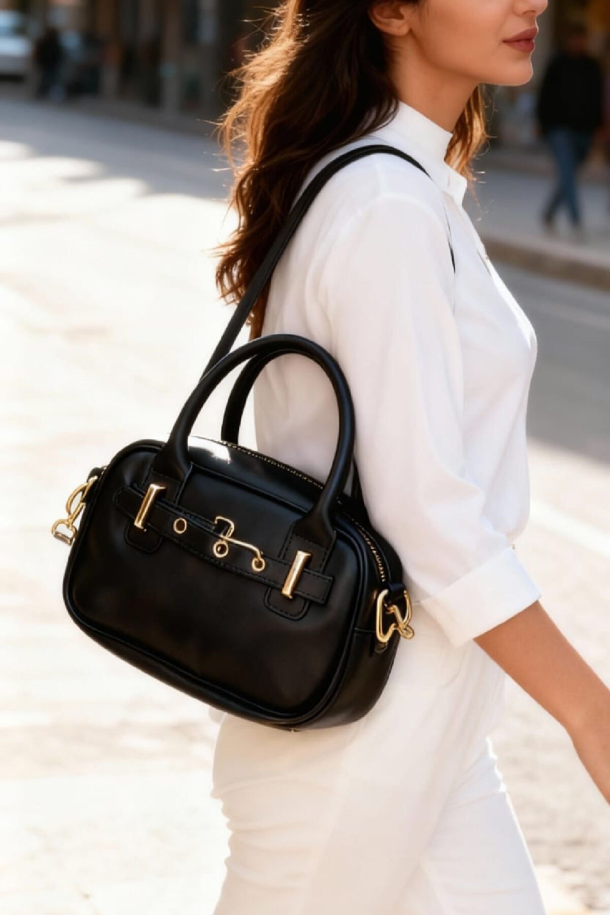 Siyah Renk Mini Kadın Kol / El / Omuz Çantası - Altın Tokalı Şık Tasarım