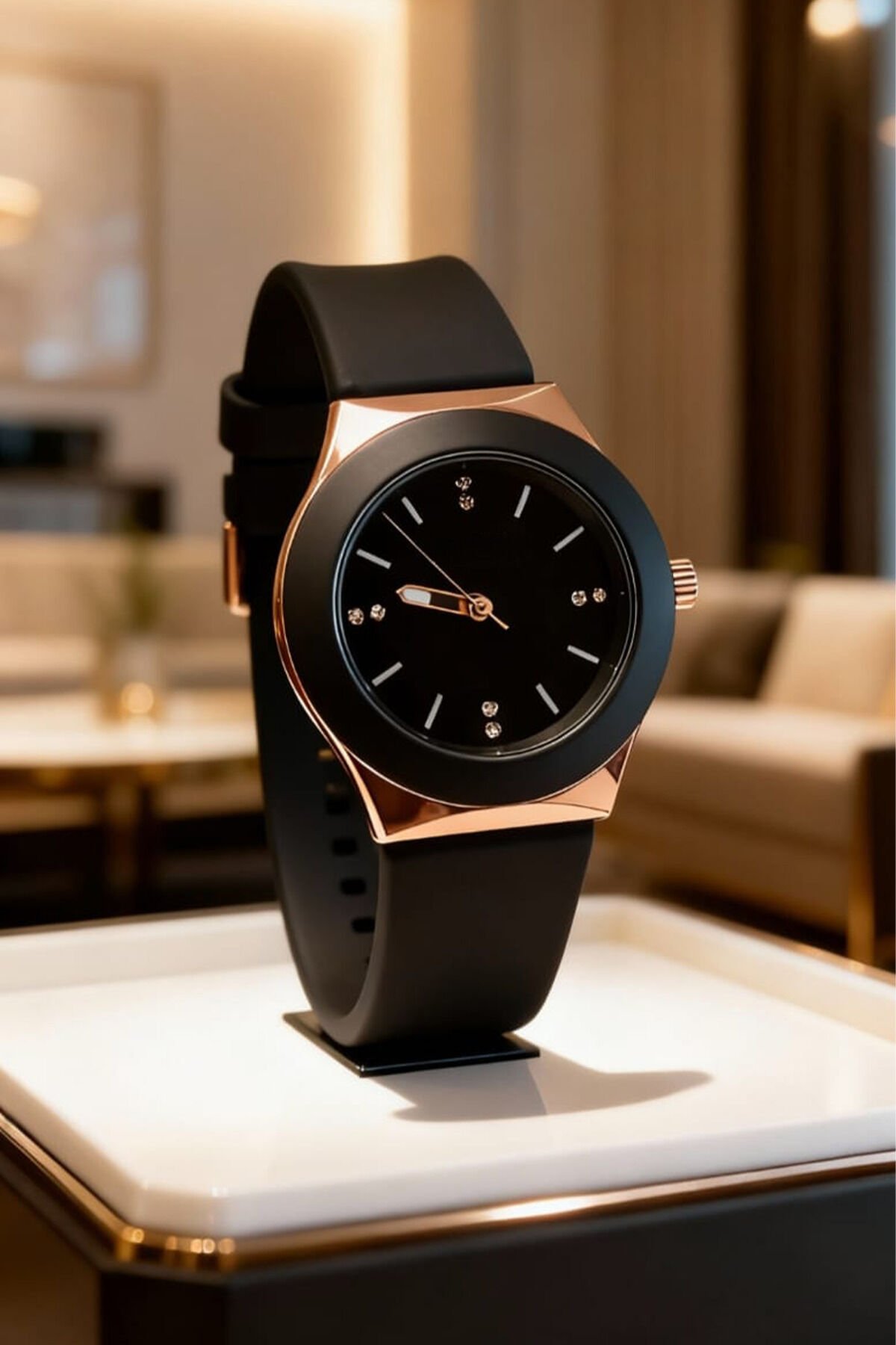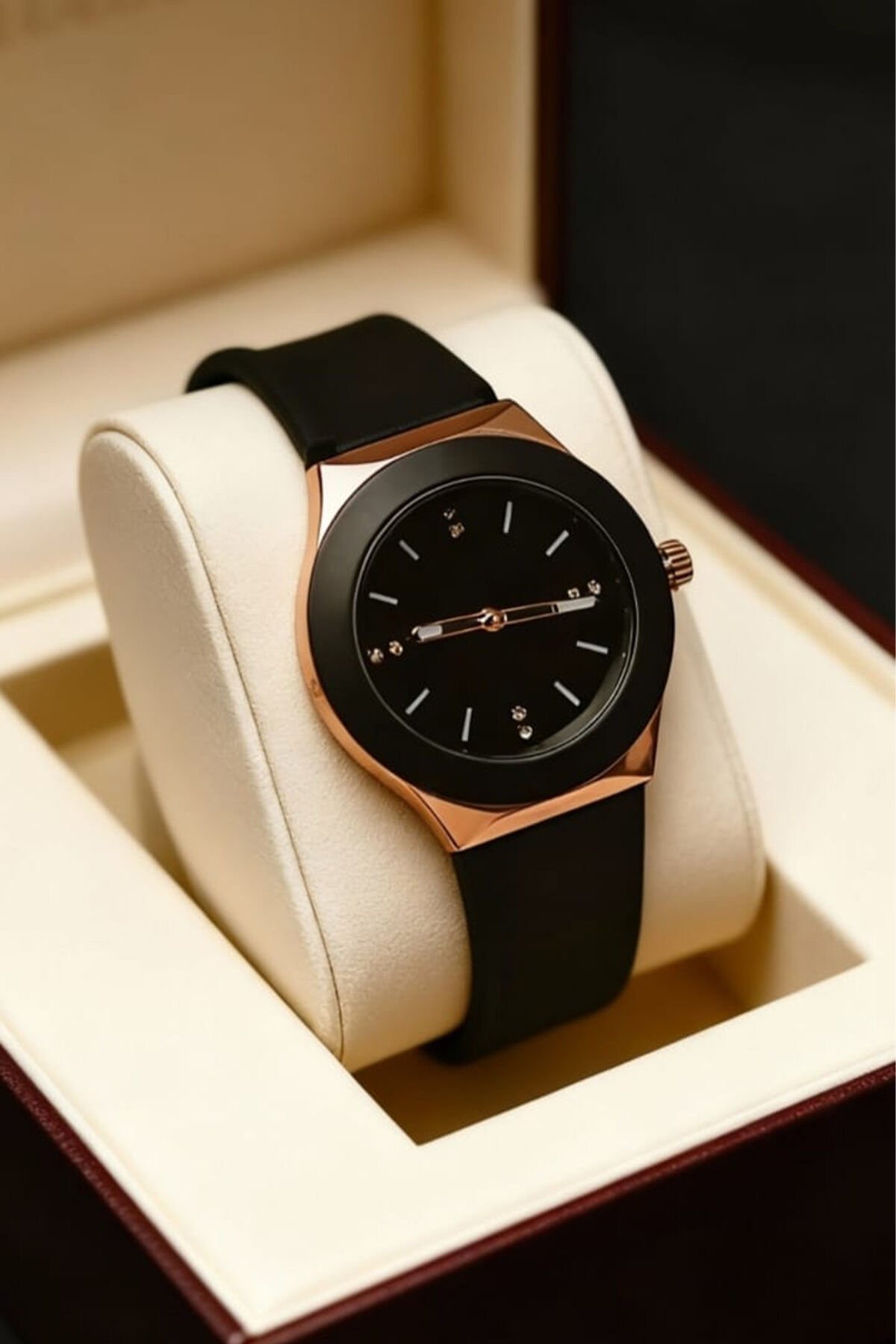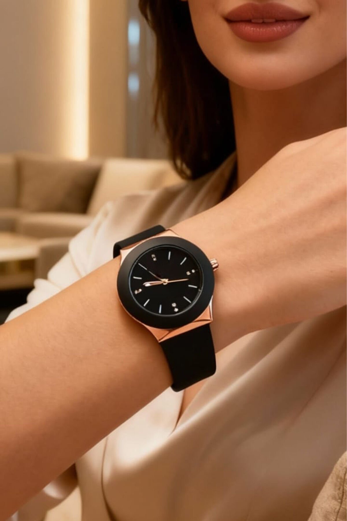 Siyah Silikon Kordon Kadın Kol Saati – Rose Gold Kasa, Minimal & Zarif Tasarım