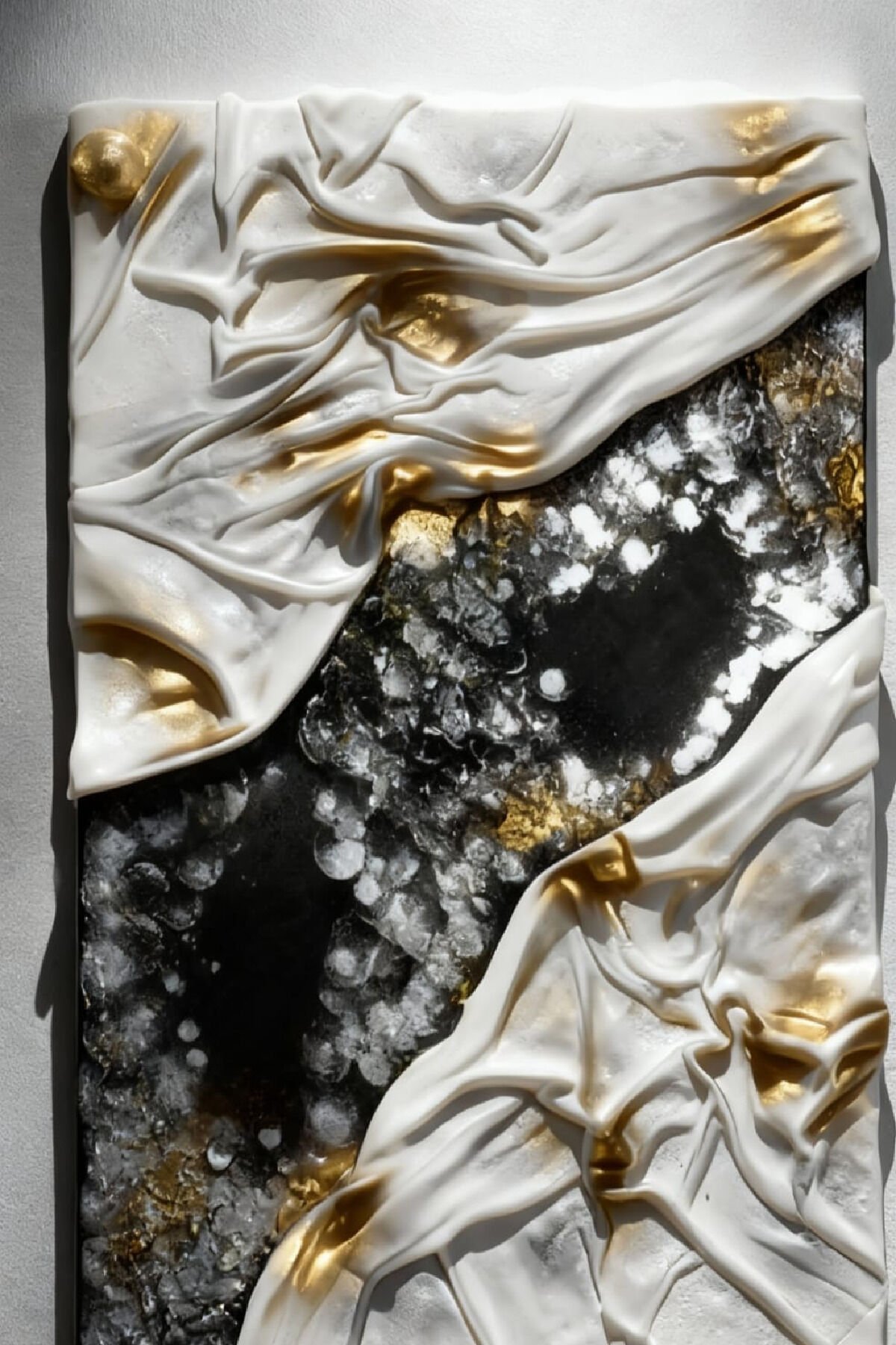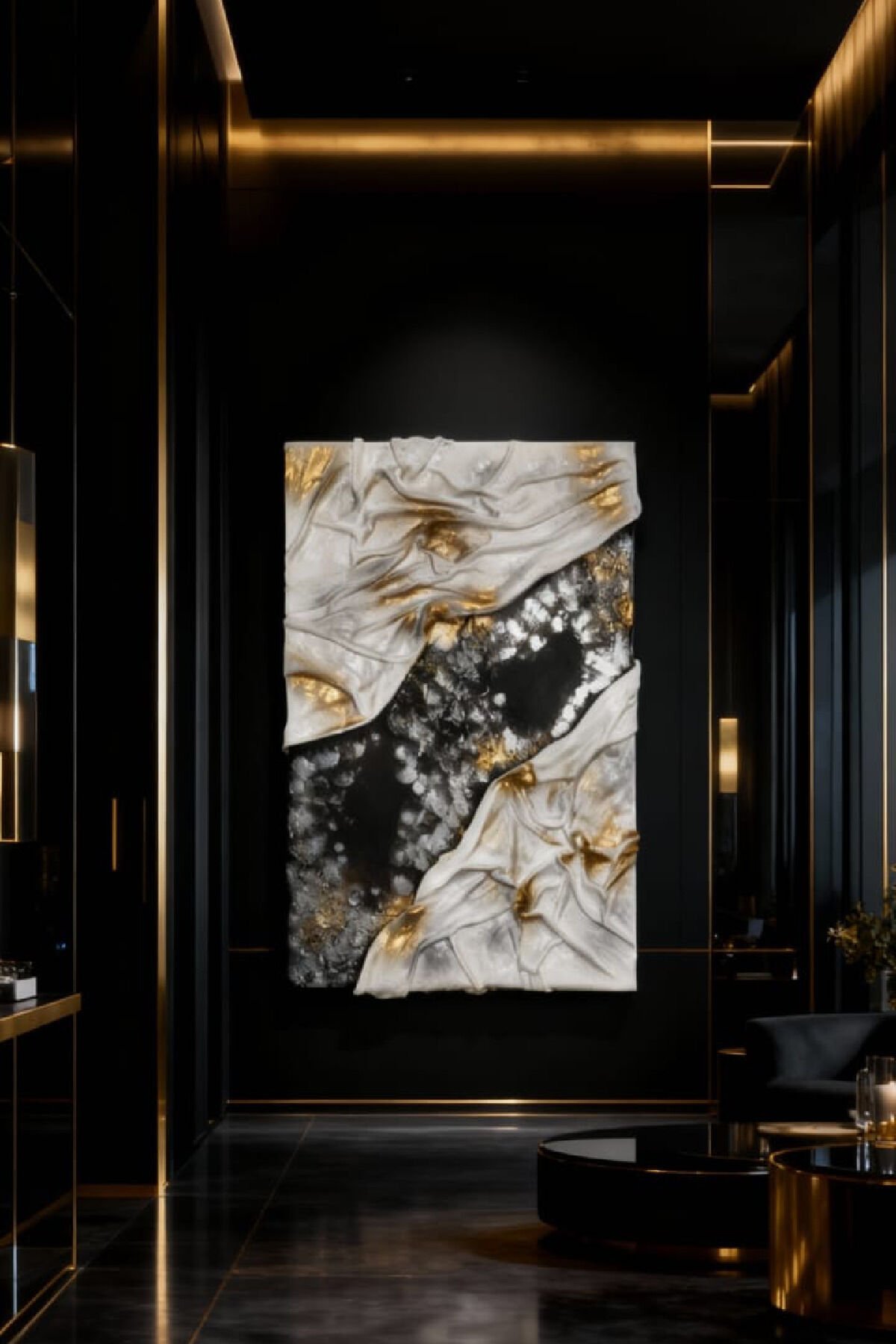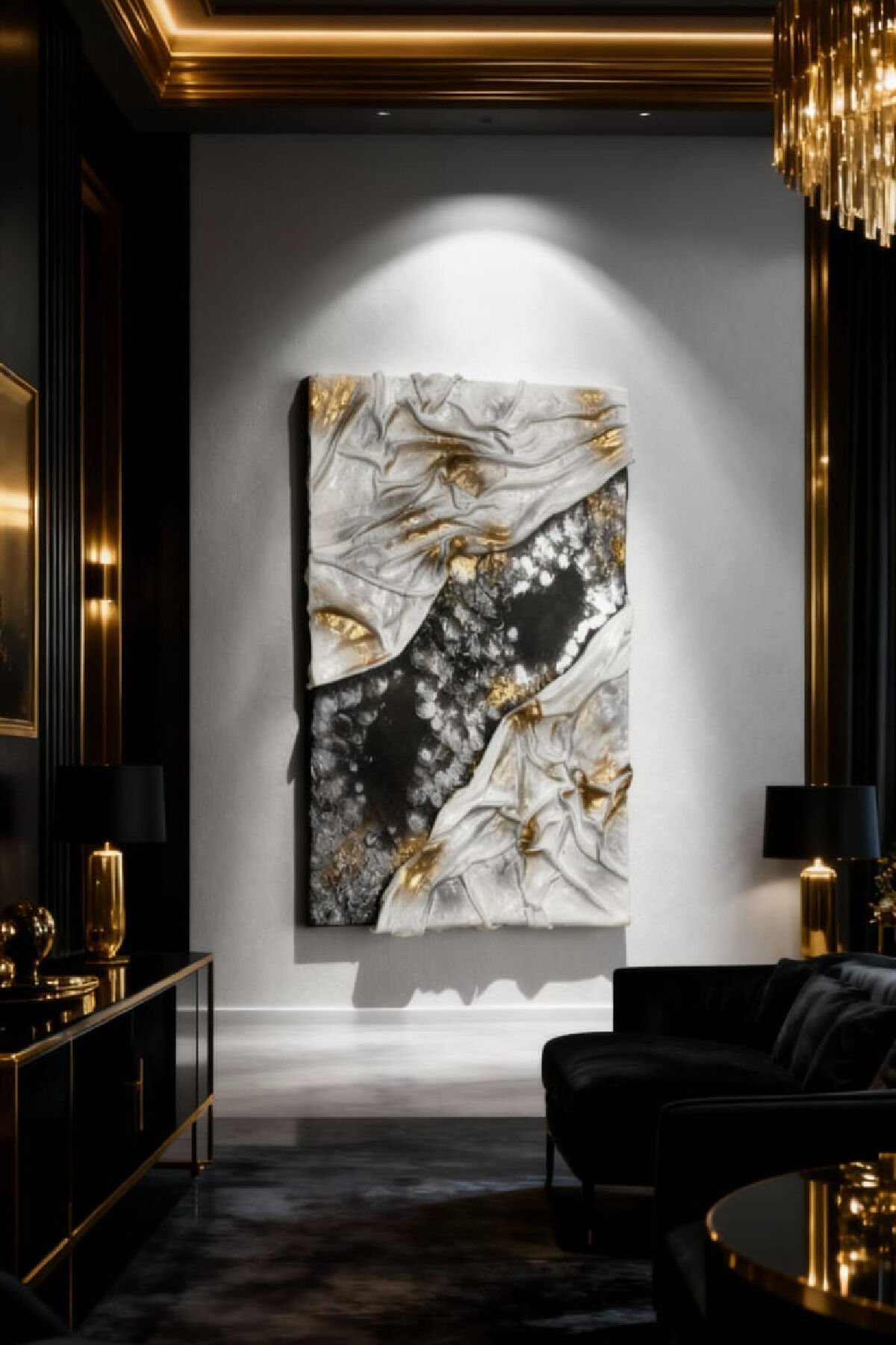 Tamamen El Yapımı, Altın Işıltılı Akış - Dokulu Tablo (35x50)