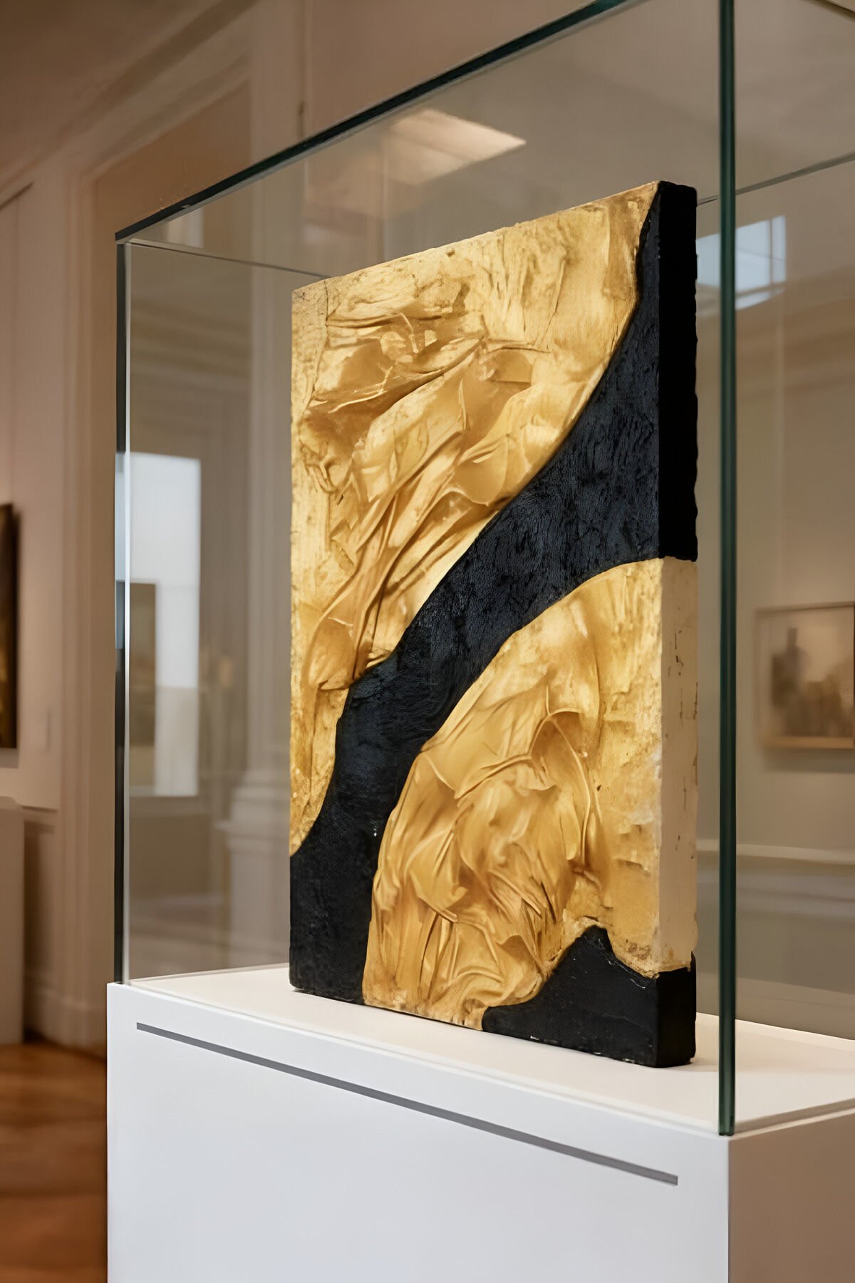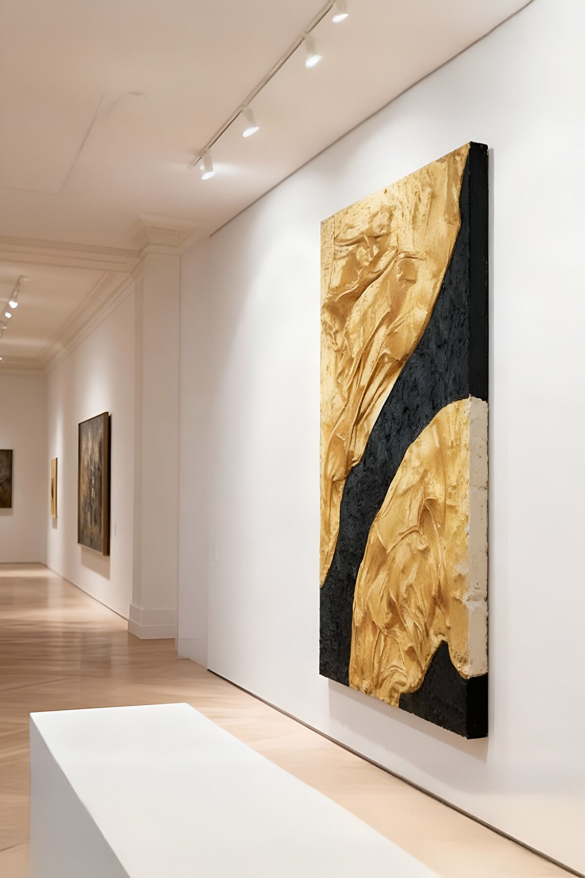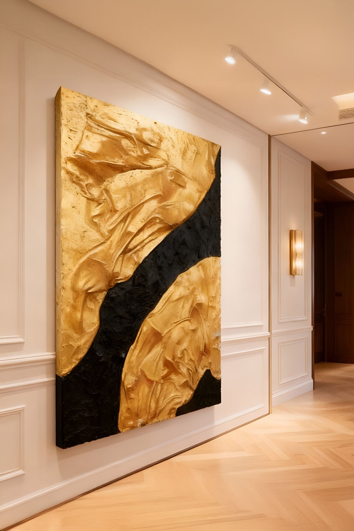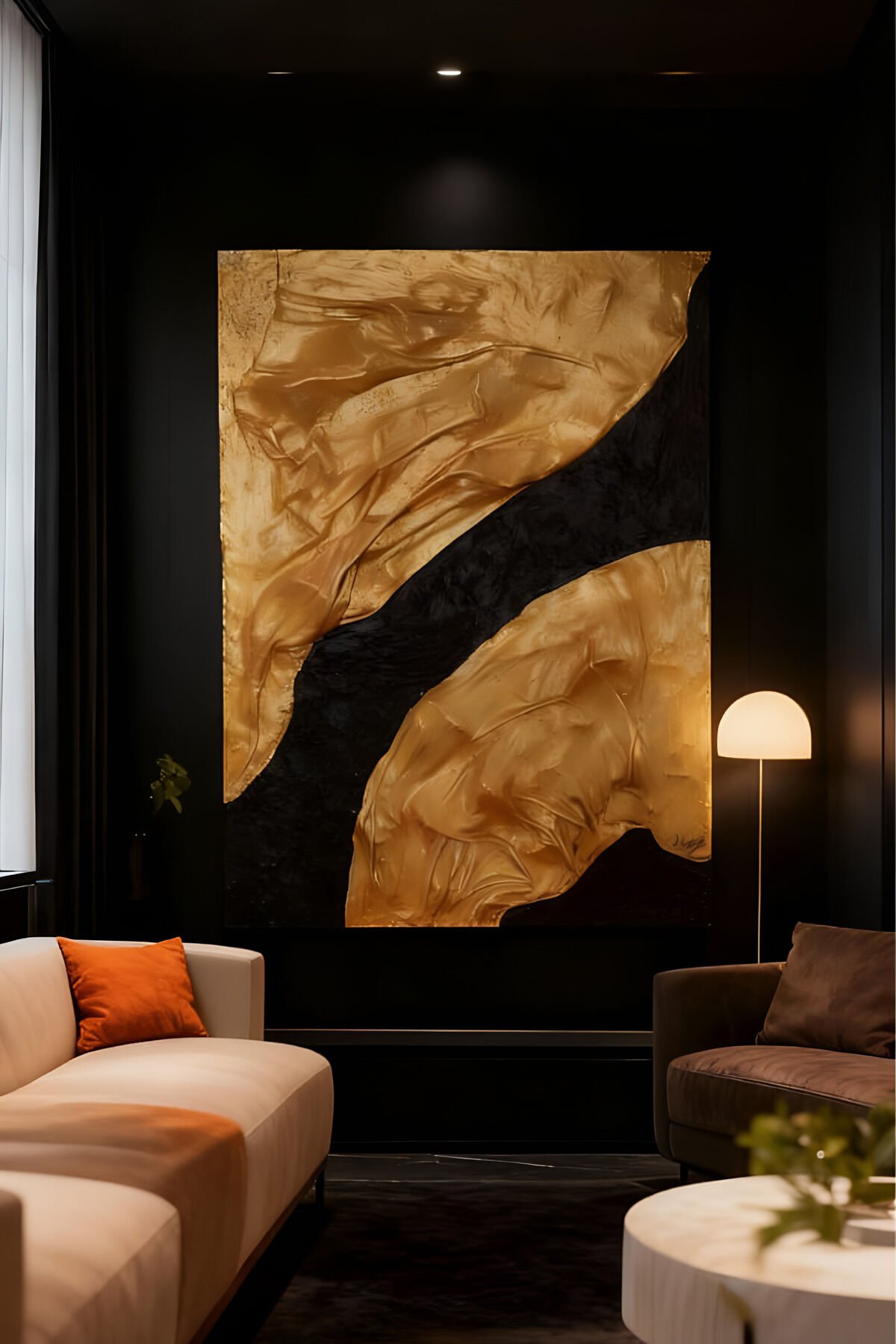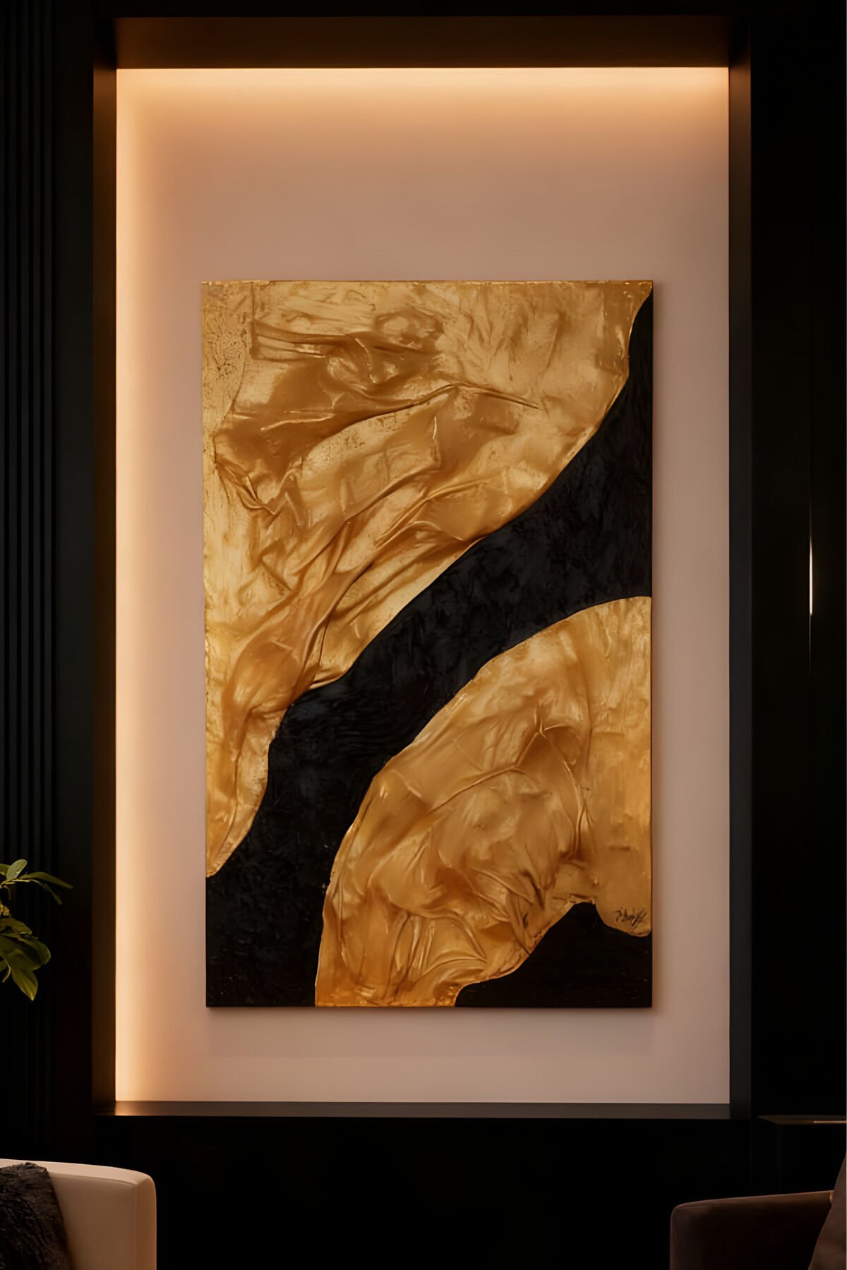 Tamamı El Yapımı, Altın ve Siyah Soyut Tablo – Modern Lüks Abstract Duvar Sanatı (35x50)