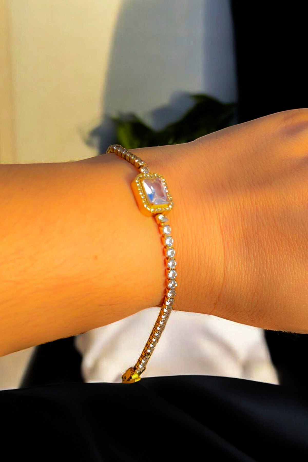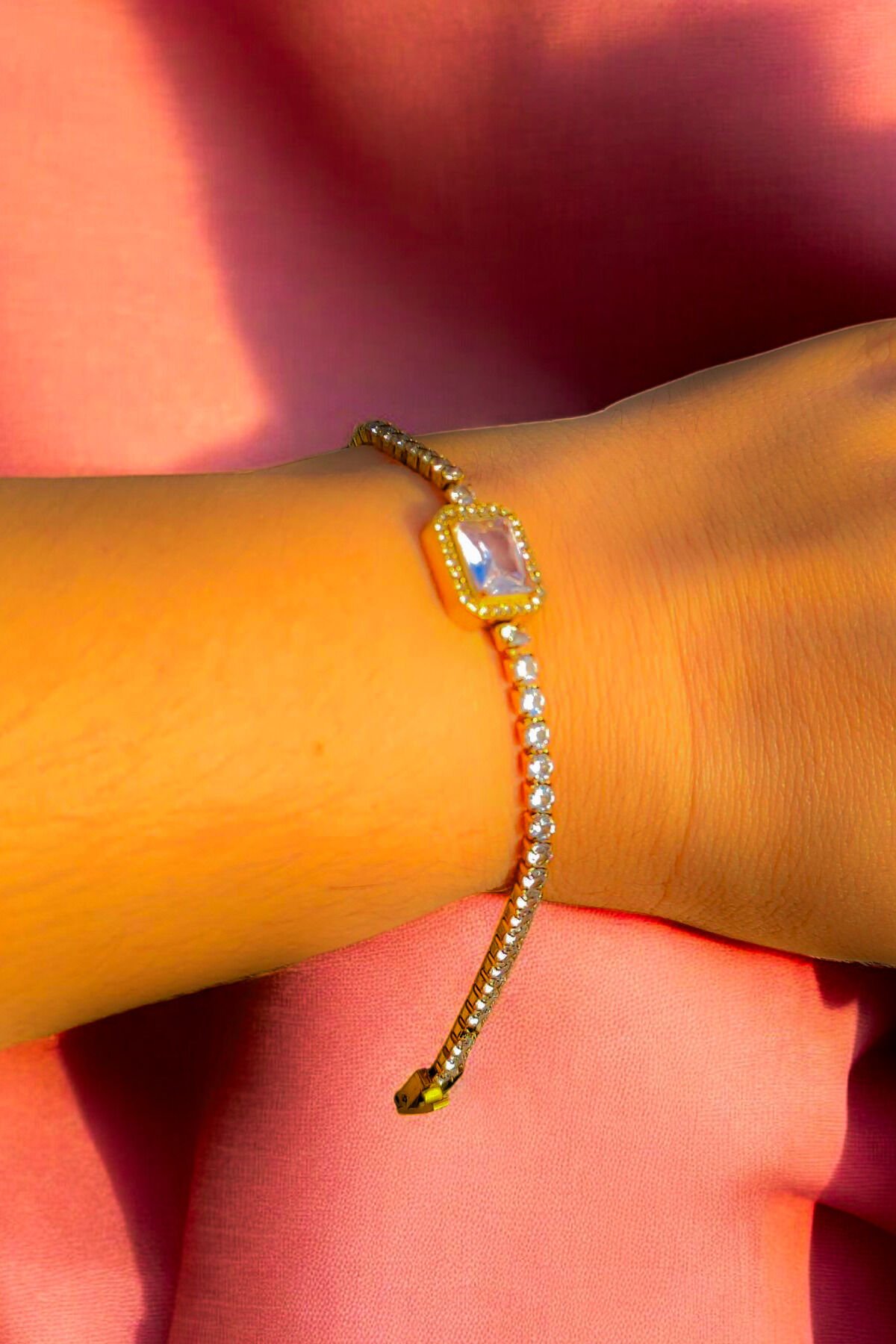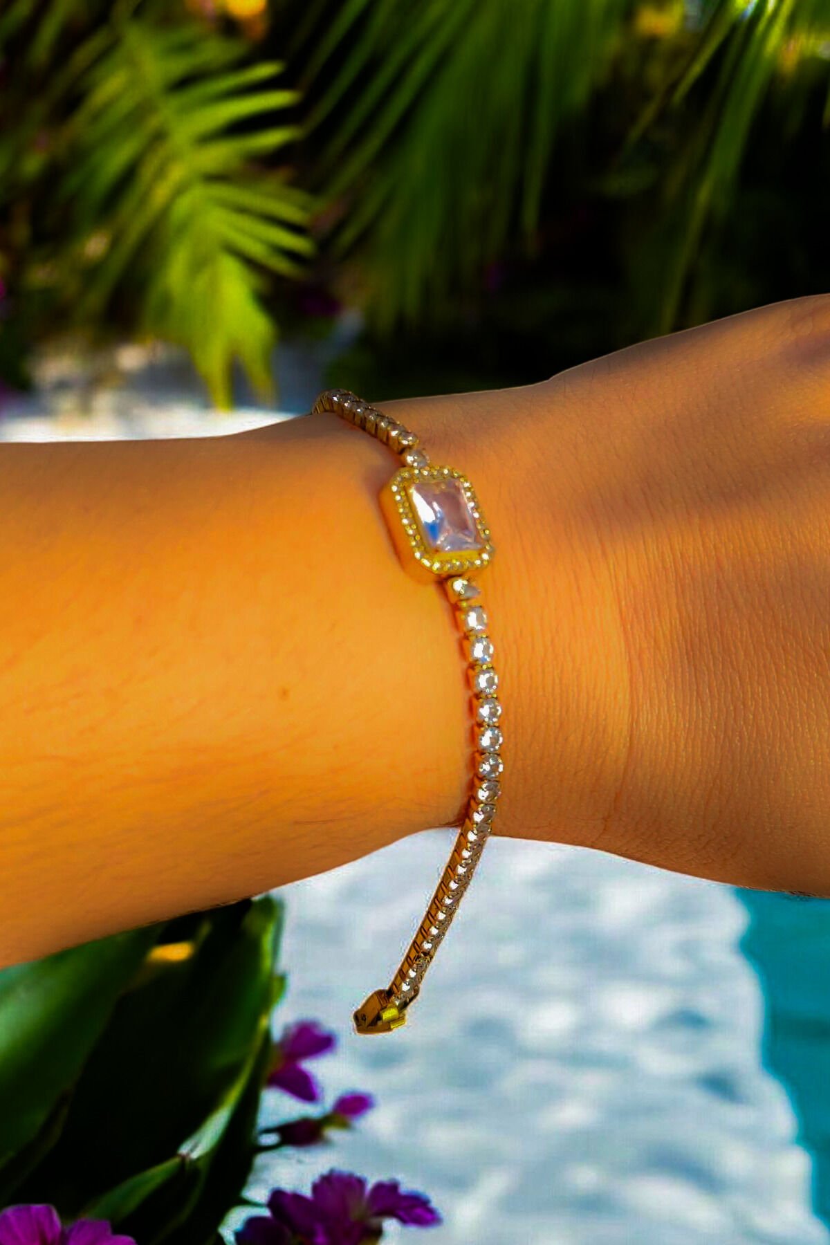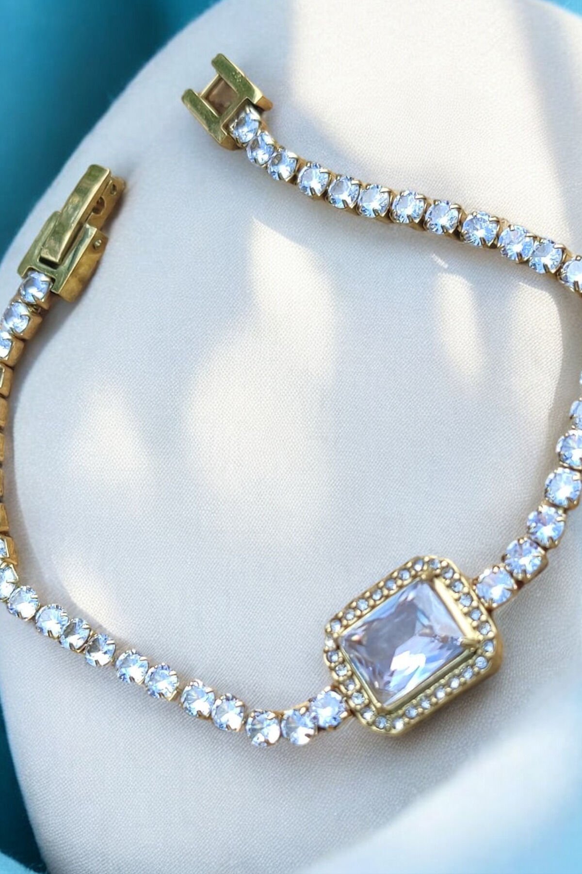 Taşlı Zarafet Kadın Bilekliği Paslanmaz Çelik (Altın Renk)