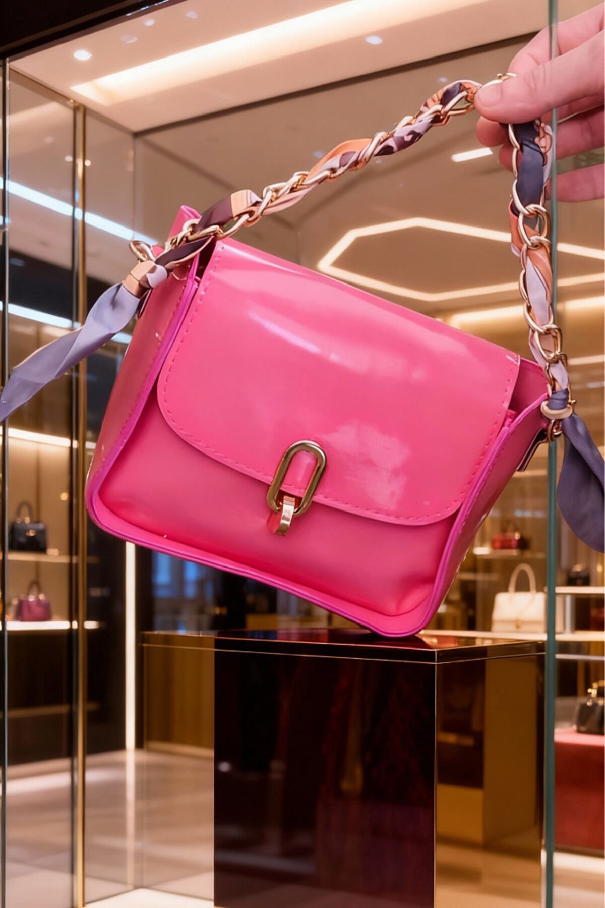 Zincir Askılı Pembe Parlak Kadın Omuz Çantası – Şık ve Trend Mini Çapraz Çanta